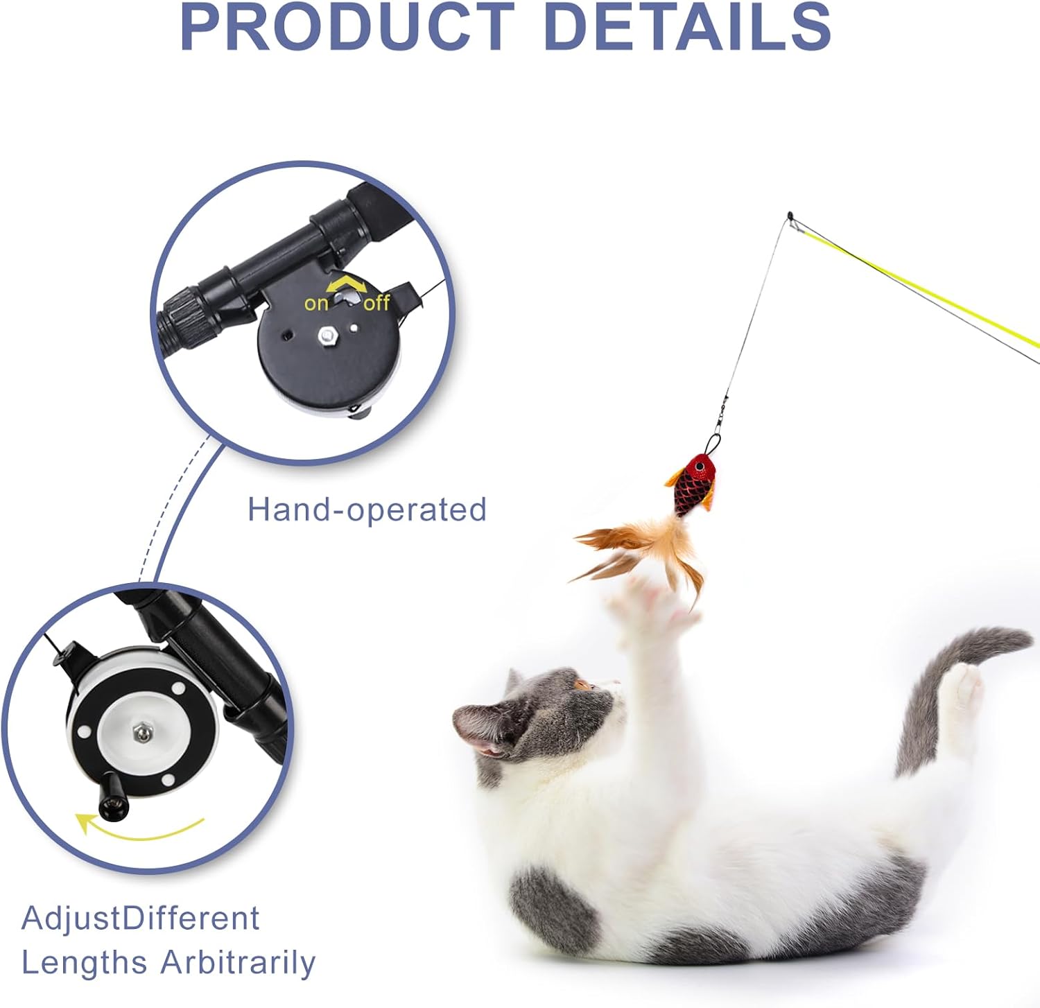【ADJUSTABLE LENGTH, ENDLESS PLAY】: Extend the pole from 16″ to 41.3″ to mimic birds soaring or fish darting—perfect for high-energy jumps or floor-level chases. The elastic string adds bounce for unpredictable, agility-boosting action!