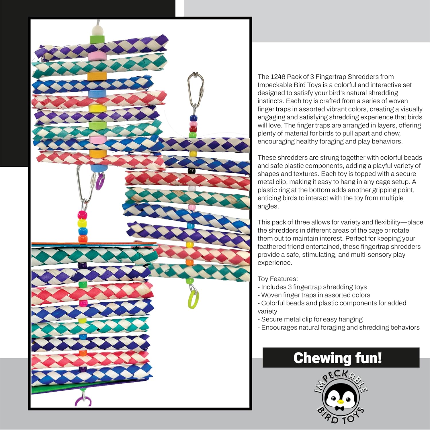 Triple the Shredding Fun with the 1246 Pk3 Fingertrap Shredders from Impeckable Bird Toys