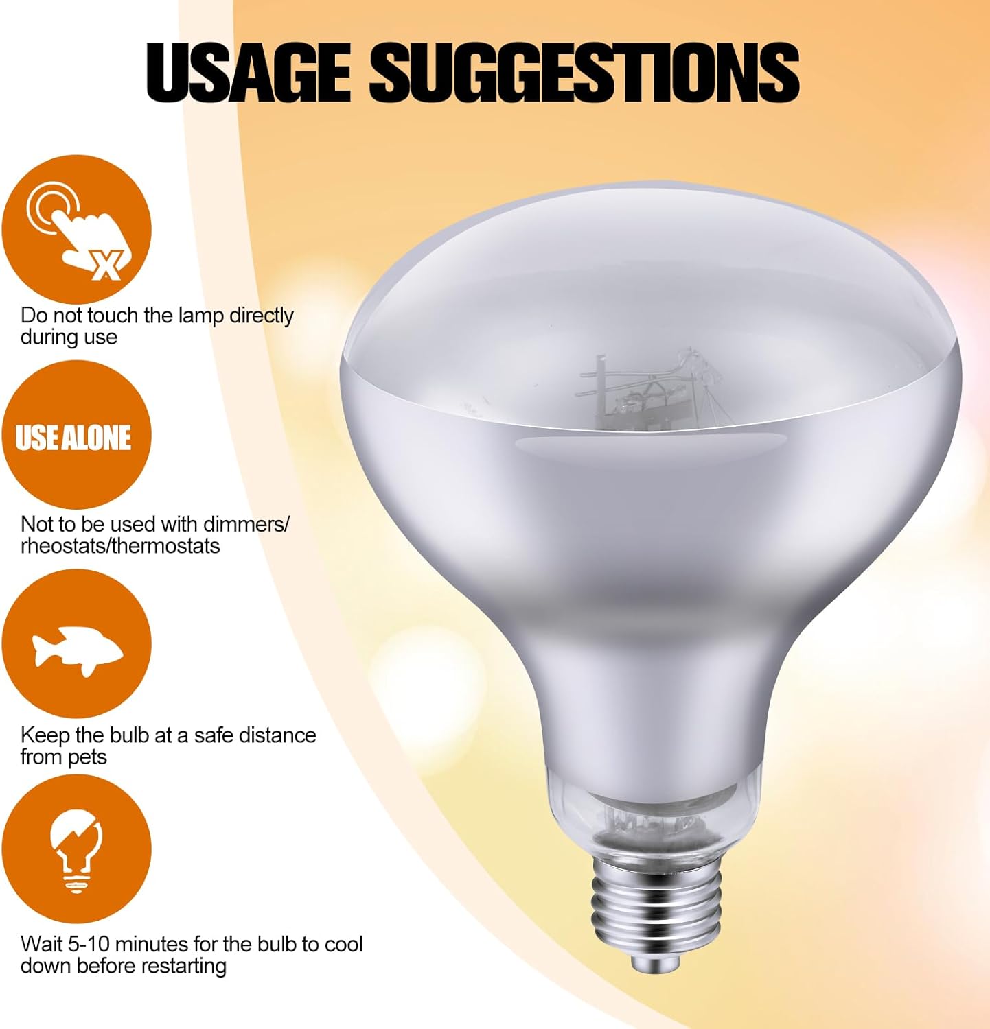【Excellent After-sales Service】:The reptile heat bulb may get damaged during transportation. If damage occurs, please contact us promptly for a replacement. If you have any questions during use, feel free to reach out to us for assistance!