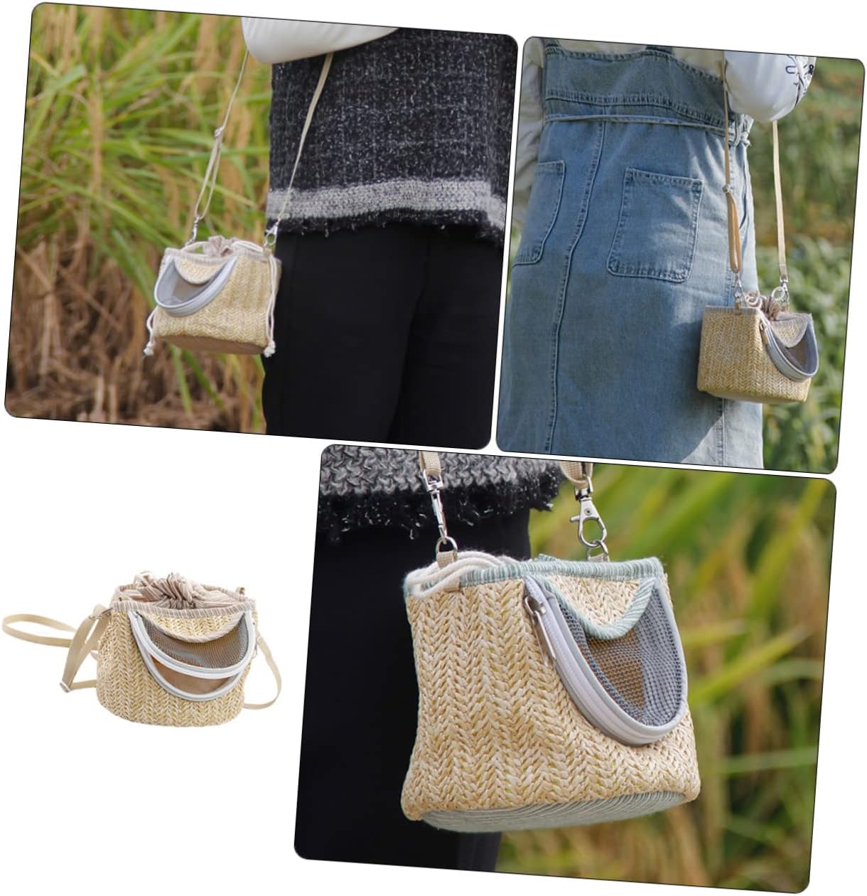 – Material: Straw-woven, Flannel, Gauze pet carrier for hamster