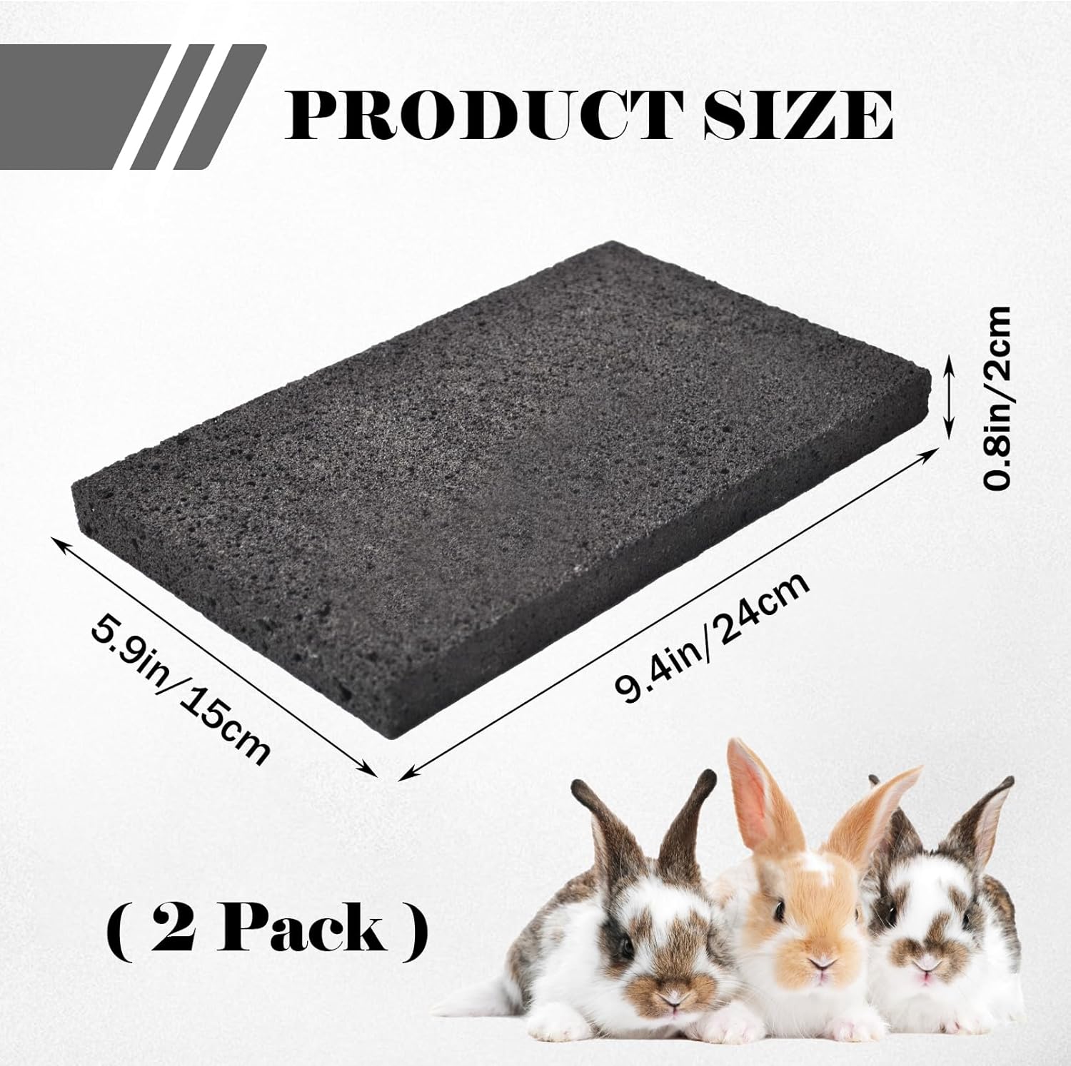 【Products Include】This product includes 2 x bunny scratch pad (9.4 x 5.9 x 0.8 in/24 x 15 x 2 cm), its hard texture, natural raw materials, very suitable for small animals chew and claw grinding, can be used for rabbits, bunnies, hamsters, chinchillas, rats, guinea pigs, hedgehogs, ferrets, gerbils and other small animals.