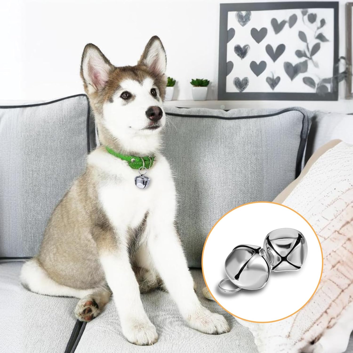 2 Pcs 1.18” Large Dog Bells Silver Dog Collar Bell Collar Loud Bells Cat Bells Collar Handmade Metal Puppy Hanging Ring Bells with Ring Pet Pendant Accessories for Dog Cat Pet