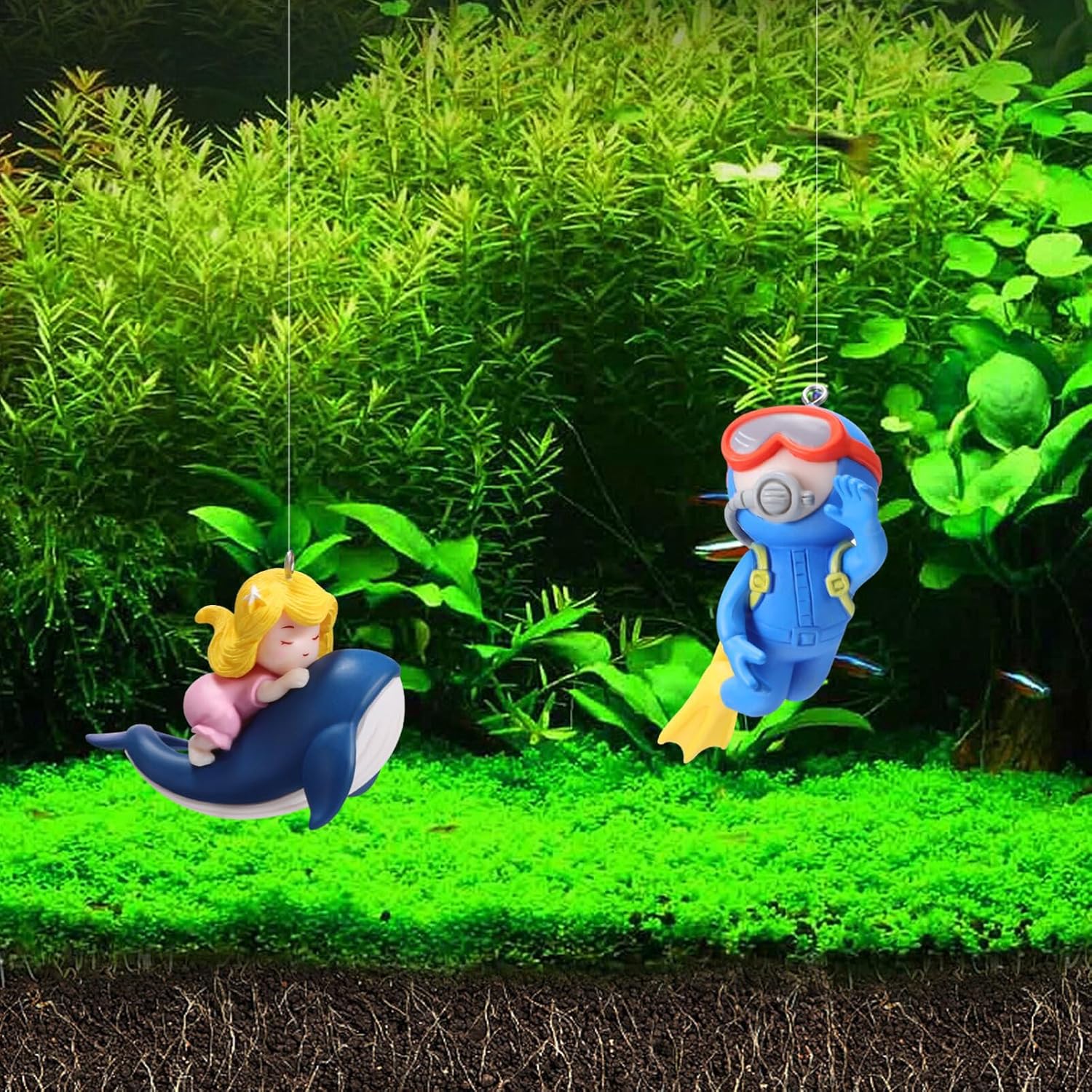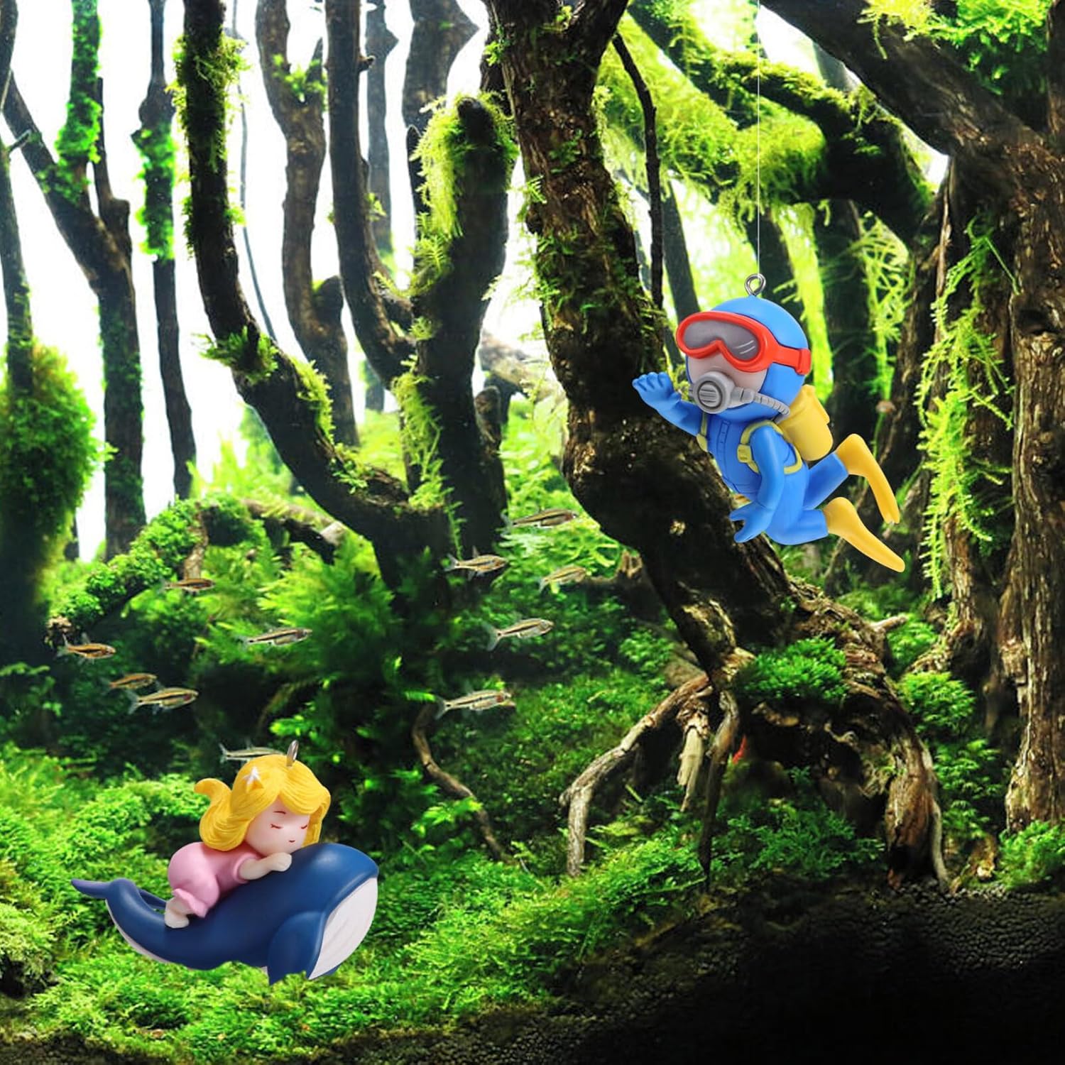 Colorful Floating Design: The vibrant diver and whale-riding girl ornaments bring a playful and lively touch to your aquarium creating an engaging underwater scene that stands out