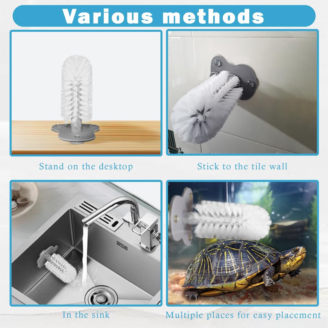 【Triple Suction Power 】This turtle cleaning brush has three powerful suction cups that ensure a firm hold on the inside walls of the turtle tank, even when the turtle is active.