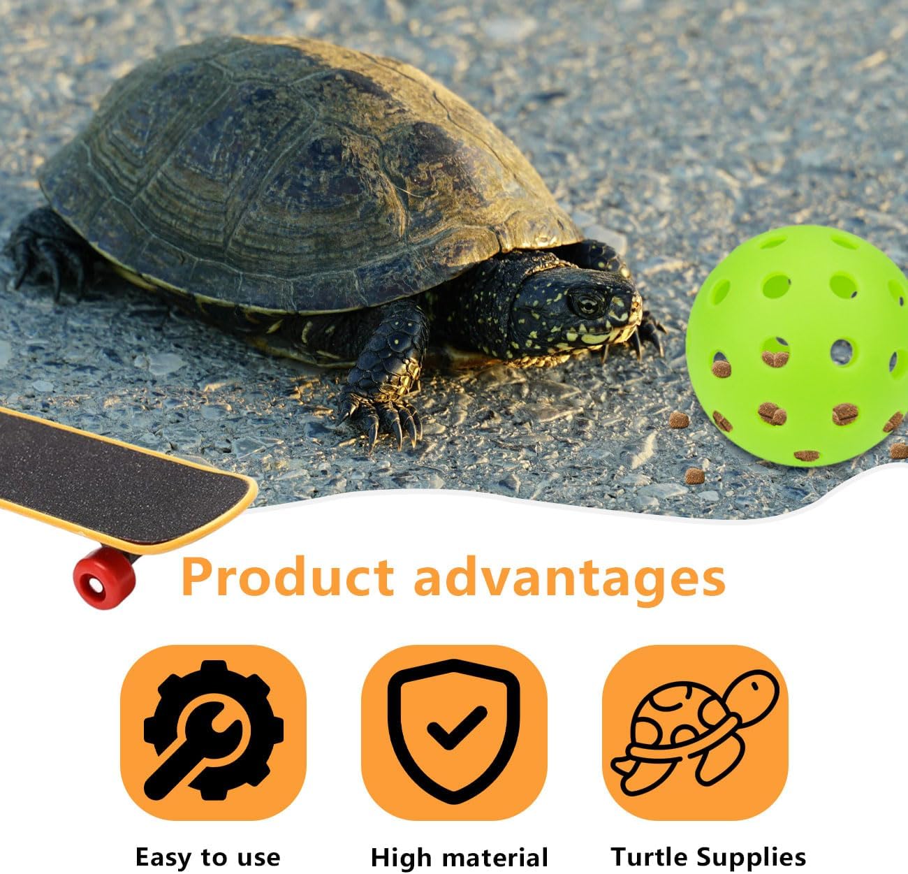 【Durable and safe】Crafted from durable frosted material, our mini skateboard for turtle ensures superior durability, withstands the strongest bites of turtles. The tortoise feeding ball, tortoise accessories is made of soft tpe, safe for your animal. The smooth rounded edges of our products help protect the real turtle from unnecessary injuries, providing a comfortable and safe playing experience when using this tortoise supplies, tortoise tanks accecories.