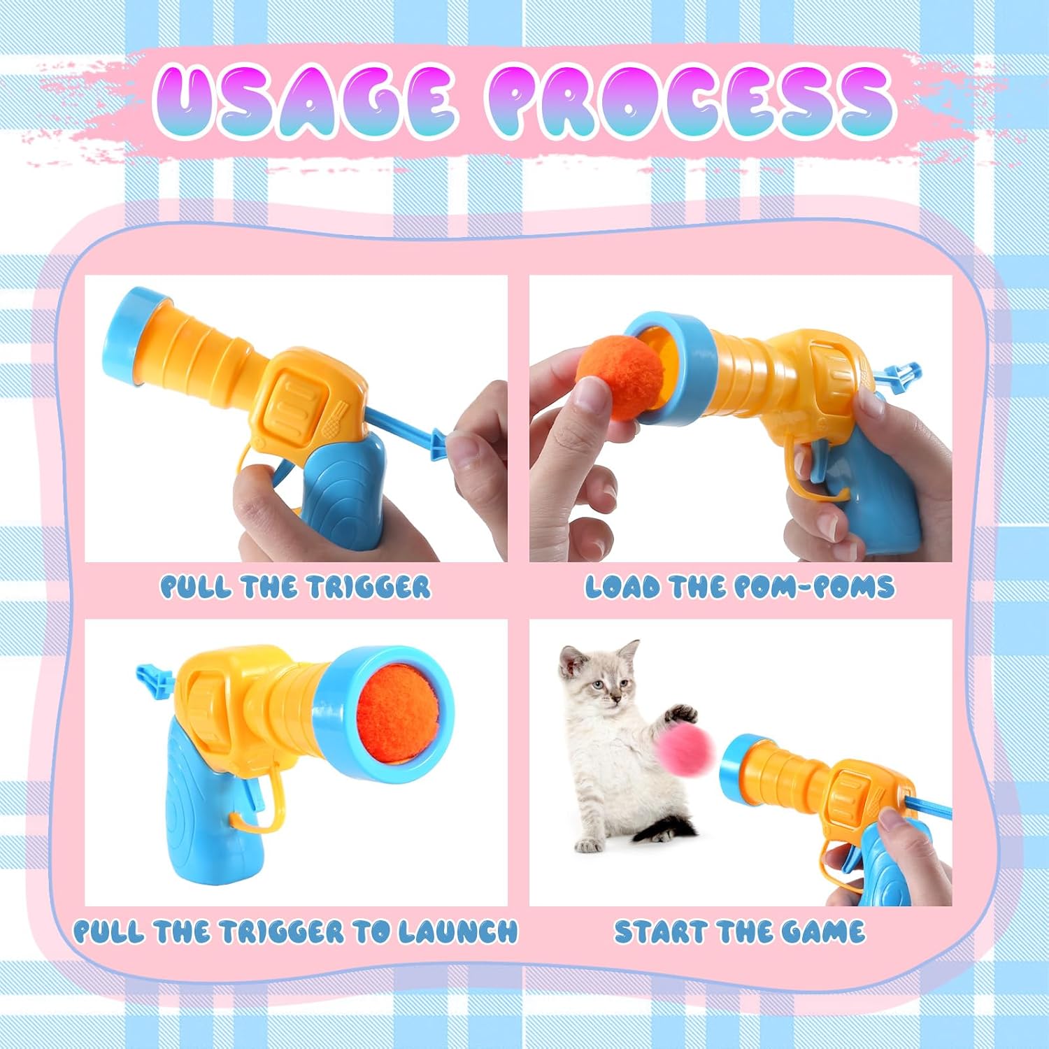 😺Easy to use:Using the Cat Ball Toy Launcher is a breeze. Simply load the Cat Toy Balls onto the launcher, grip the handles firmly, and give them a gentle squeeze. Watch as the balls are launched, sparking your cats’ curiosity and prompting them to jump, pounce, and swat with delight.