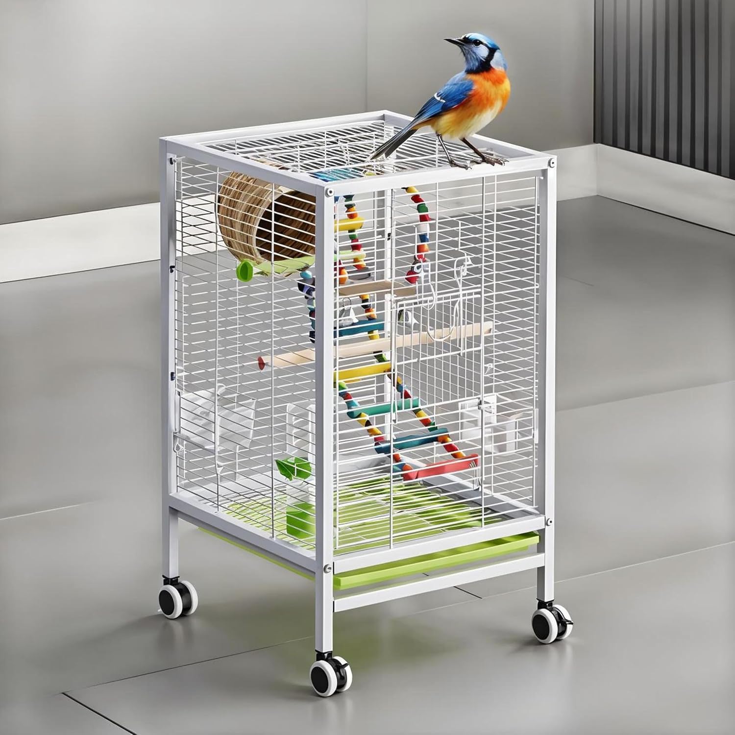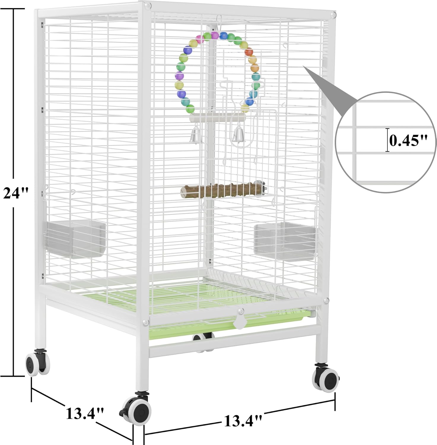 24-Inch Iron Bird Cage with Wheels, 61cm Height, Rolling Stand for Small Birds, Parakeets, Lovebirds, Canaries (White)