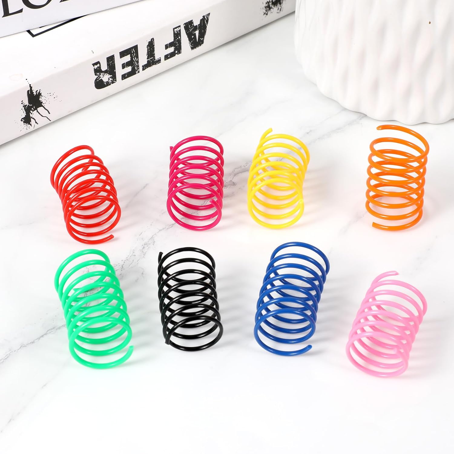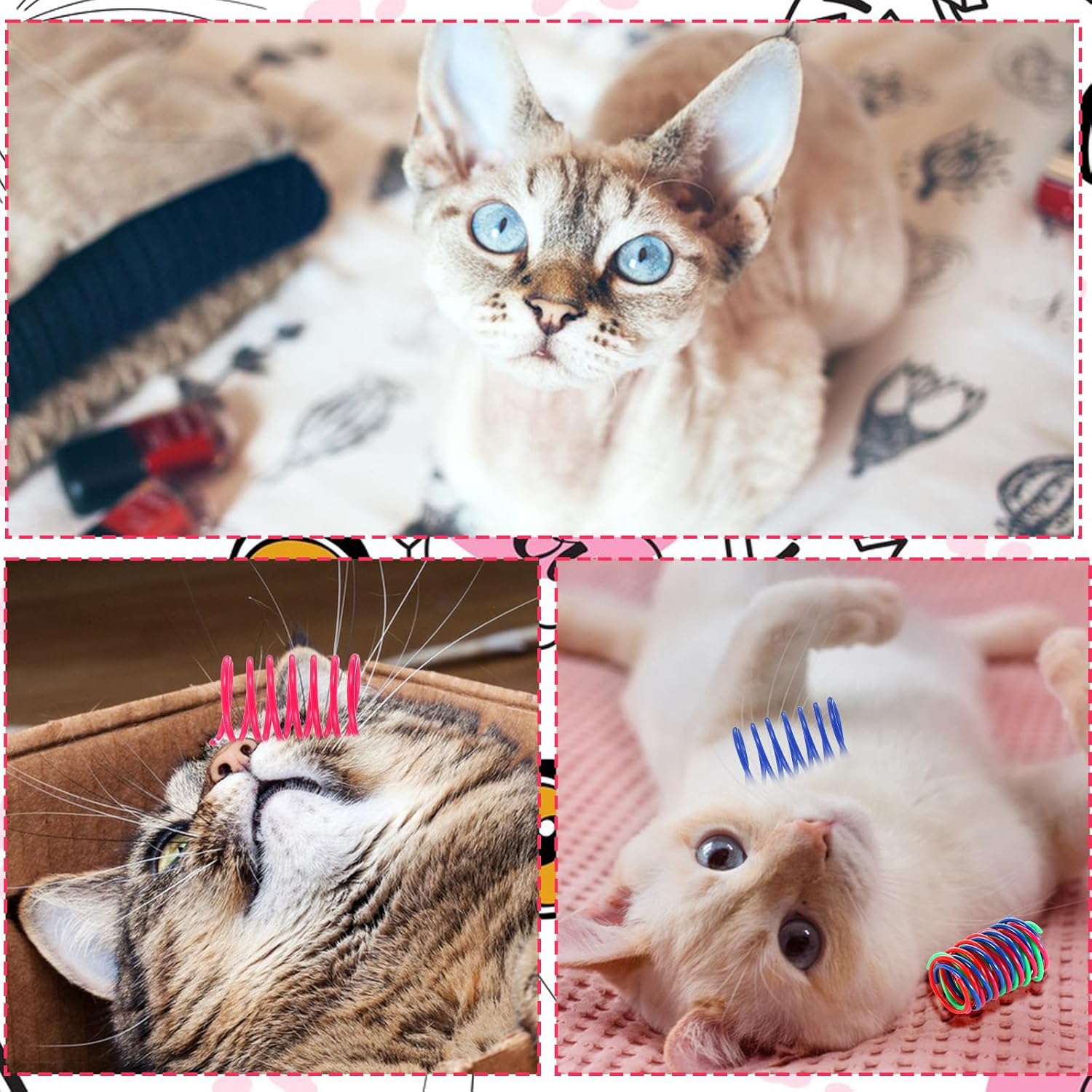 Package Content: Our cat spring toy set includes 24 vibrant springs, designed to keep your feline friend entertained and active. These cat toy springs are perfect for encouraging exercise and play.