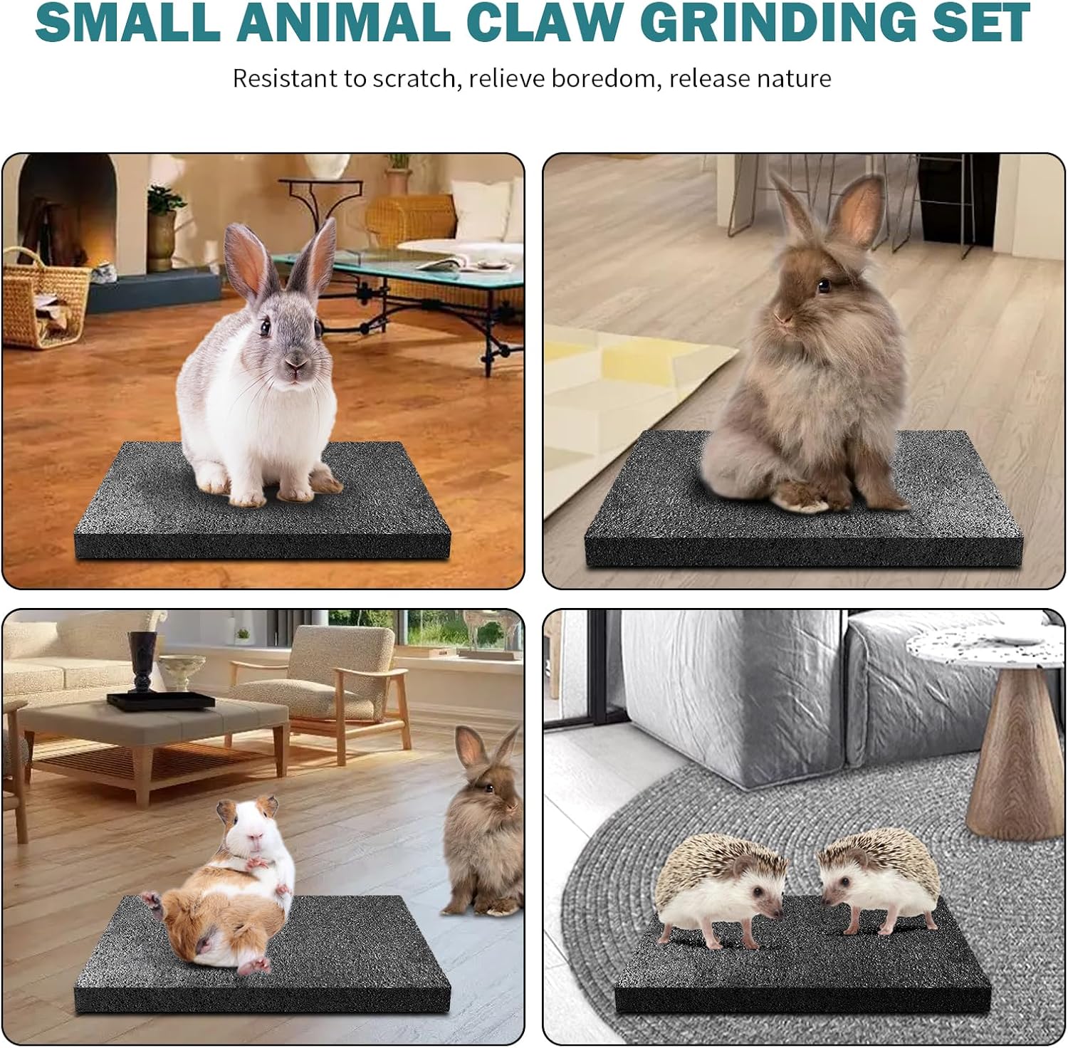【Rabbit scratching pad size】: 9.45 x 5.9 x 0.98 inches. It is big enough for your pet, with smooth surface edges and durability for activity and chewing space. It will not hurt your pet.