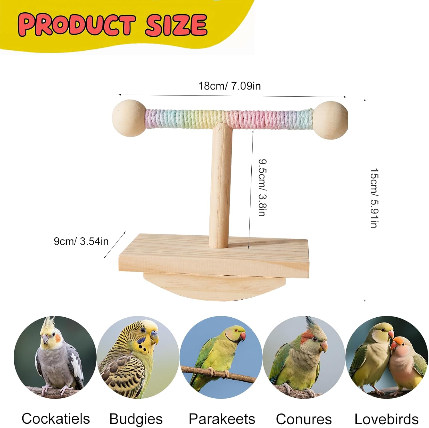 【resting and playing】 This parrot perch set includes a perching stand, a 13.78-inch cotton bird rope, and two mini balls. Parrots naturally enjoy perching and moving around, which helps alleviate stress and reduce boredom.