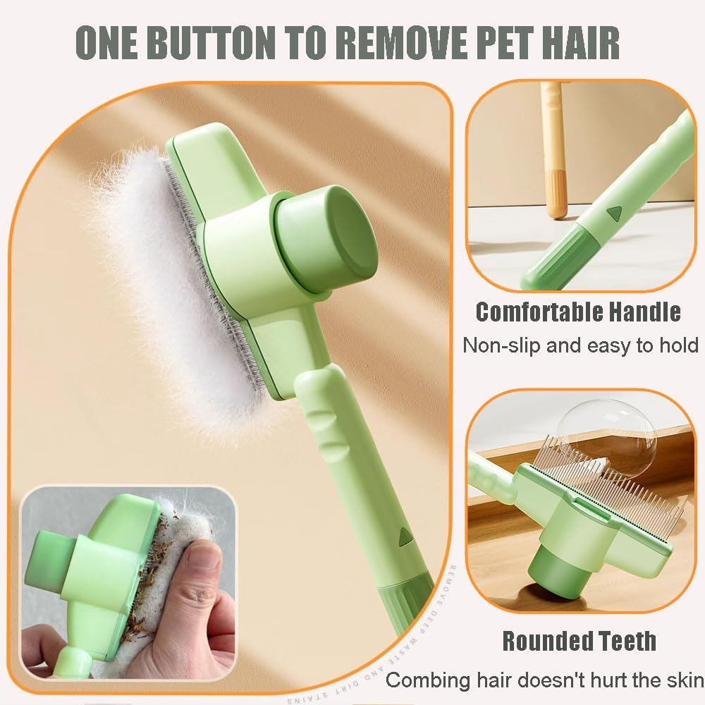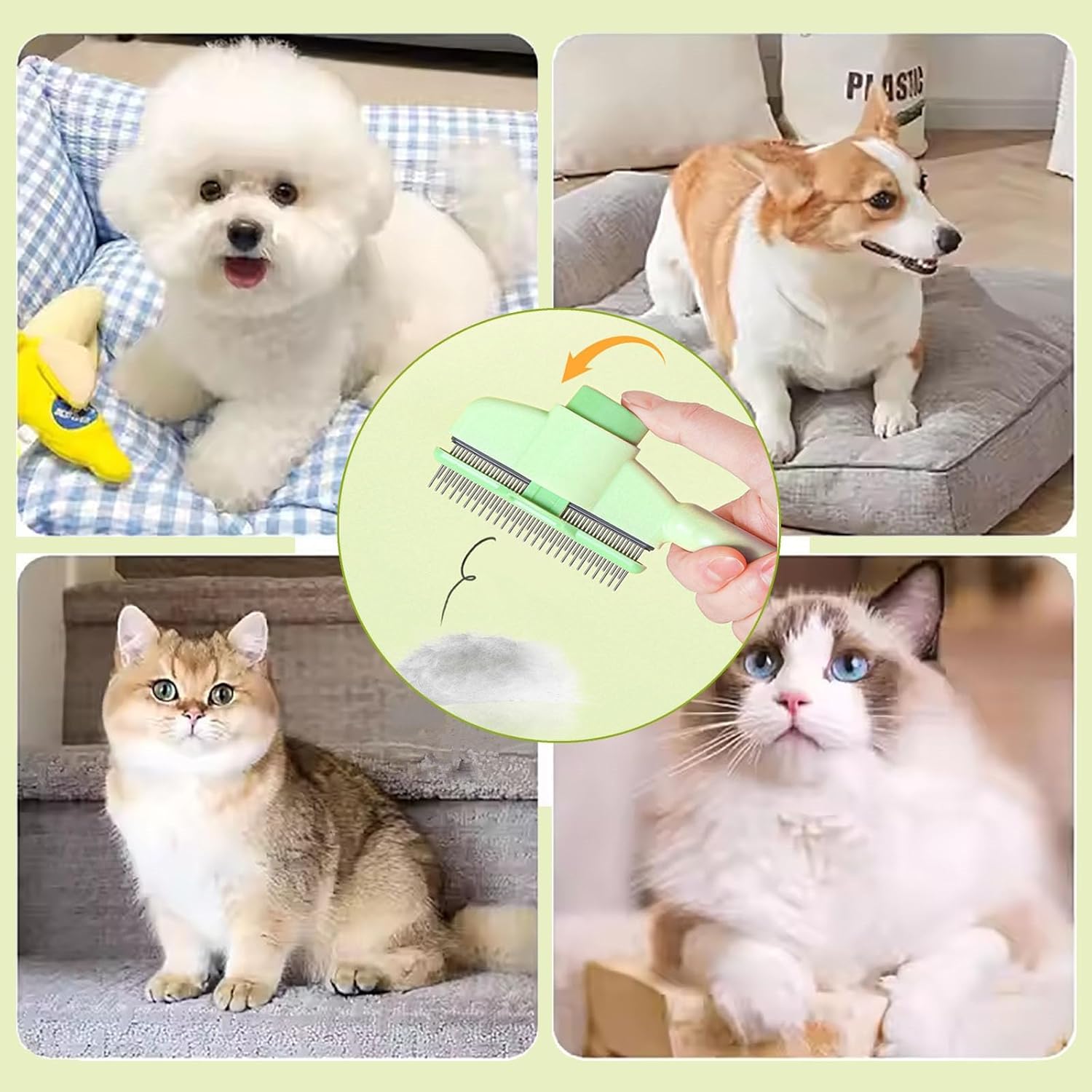 2PCS Pet Hair Removal Comb Flea Comb, Multifunctional Cat Brush with Release Button, Grooming Brush Supplies for Detangling Thinning and Shedding, All Hair Types (Green&Yellow)