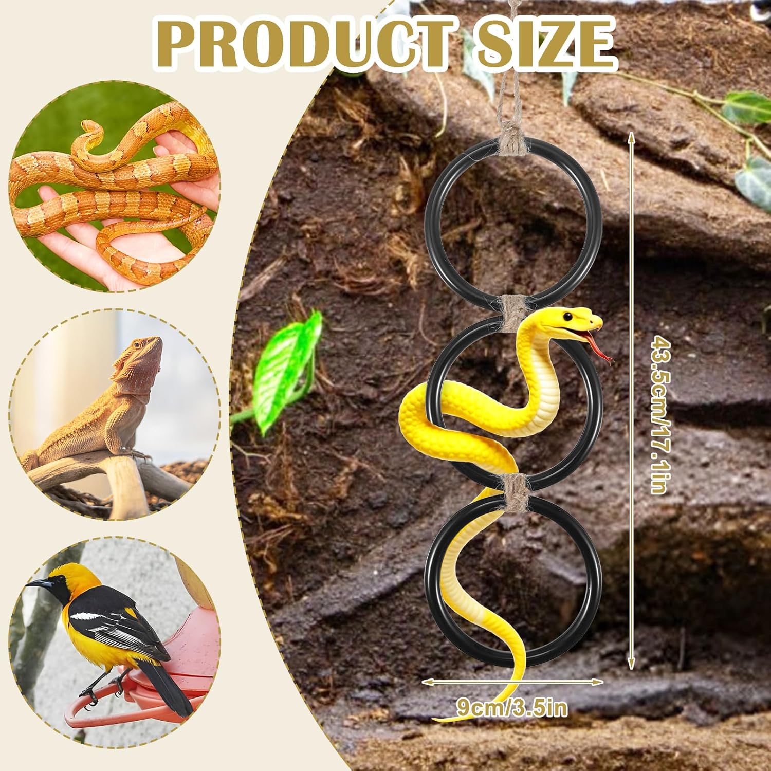 【Easy Installation】 These snake enclosure accessories come with hooks for secure attachment to mesh lids without damaging enclosure seals. The 17.1-inch total length and 3.5-inch ring width make them easy to integrate into any terrarium setup, providing endless climbing opportunities for your pet snake or reptile.