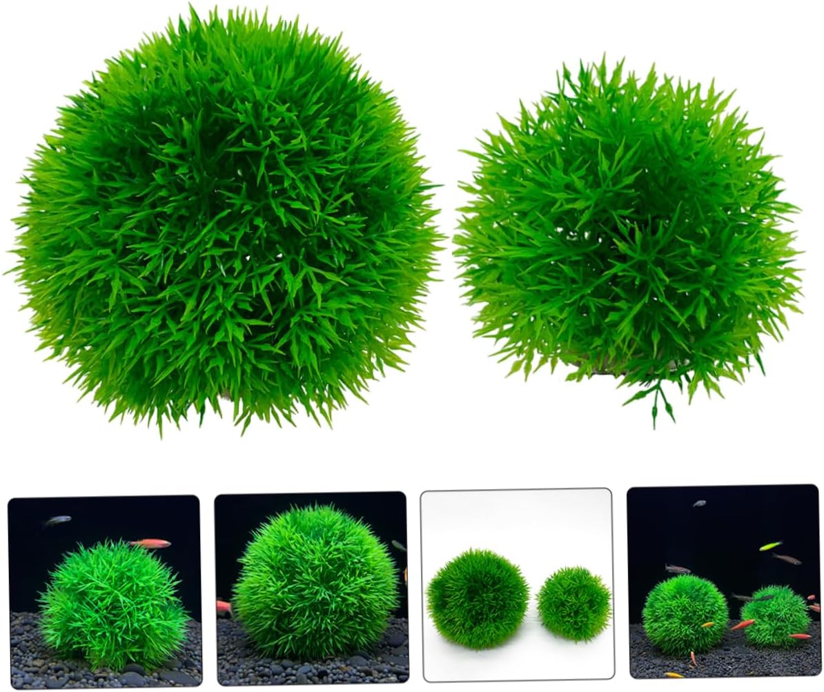 2pcs Artificial Grass Ball Aquarium Decors Home Decoration Lifelike Aquatic Plants Vivid Aquatic Plants Aquarium Plants Balls Turtle Tank Grass Crafts Plastic Accessories Fish Tank