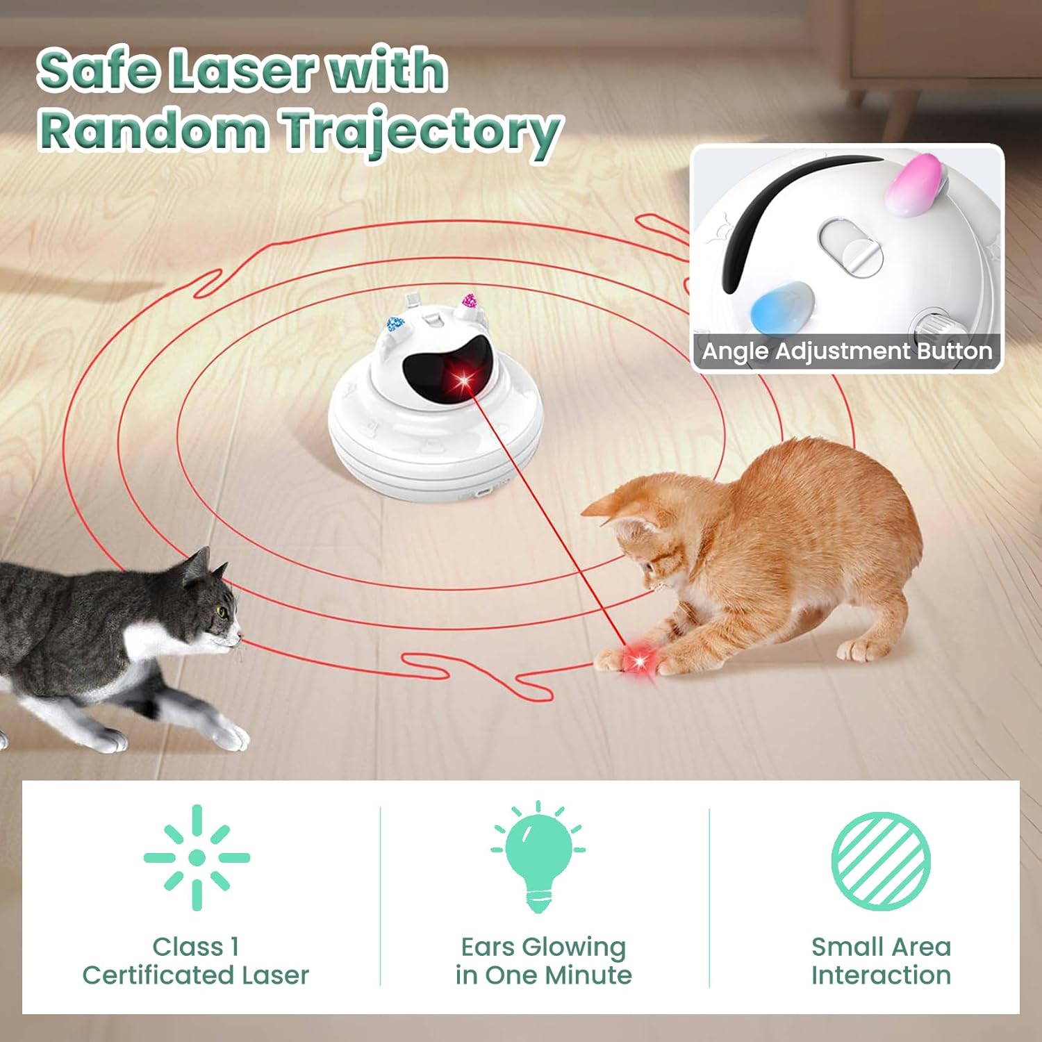 3 in 1 Automatic Interactive Cat Toy, Cat Laser Pointer Toy with Random Trajectory, Hide and Seek Moving Feather, Rechargeable Electronic Teaser Wand for Bored Indoor Cats