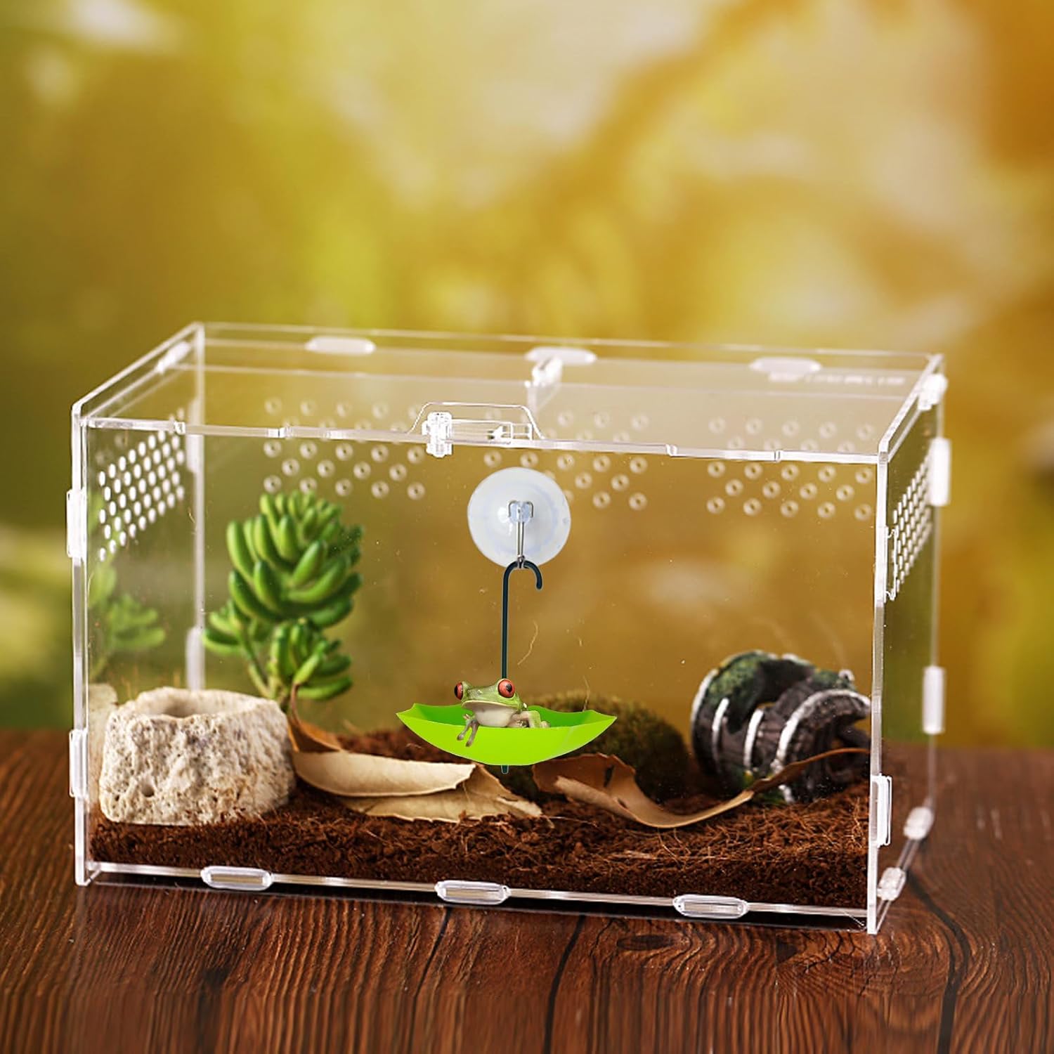 Cute Umbrella Design: This frog habitat features a fun umbrella design that customizes the appearance of the tank, adding fun and interactive elements. It is an ideal choice for active frogs and other small reptiles to relax and play.