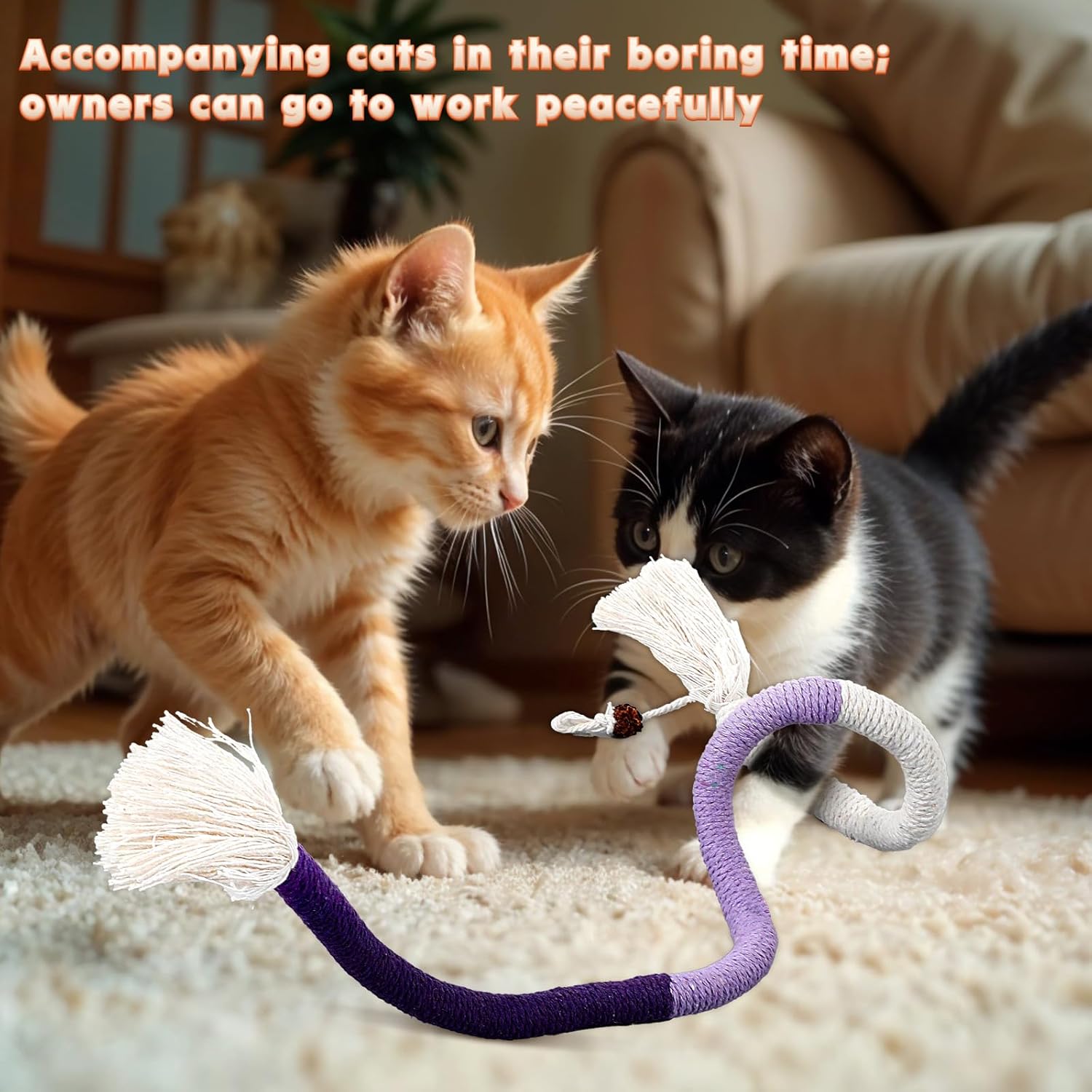 High-quality Catnip: Because catnip, silvervine sticks for cats and gall berries have an rresistible influence to cats, cat string toy comes with these things to effectively attract the attention of your feline friends. High-quality cat rope can help cats relieve stress, stimulate cats’ hunting instincts, and make them happy and energetic.