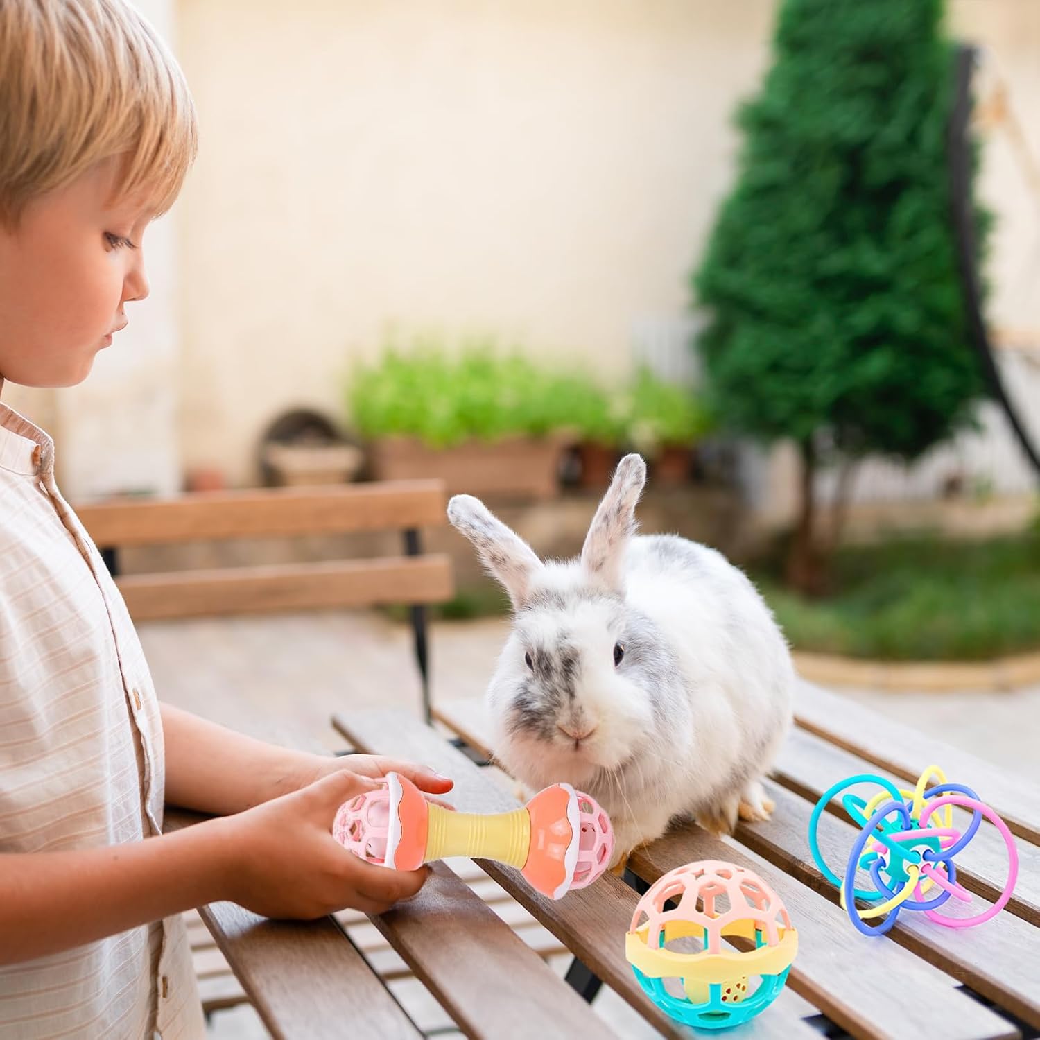 3 Pcs Rabbit Toys, Novelty Bunny Toys with Bell Balls, Durable Guinea Pig Hamsters Chinchillas Toys, Prefect for Small Animals Playing Teeth Indoor Outdoor