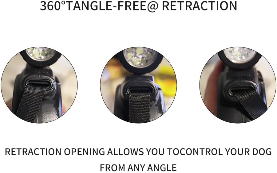 360° Tangle-Free Retractable Dog Leash with Flashlight, Dispenser and Poop Bag Heavy-Duty Nylon Tape for Small, Medium Dogs and Cats One-Handed Brake and Lock, Blue
