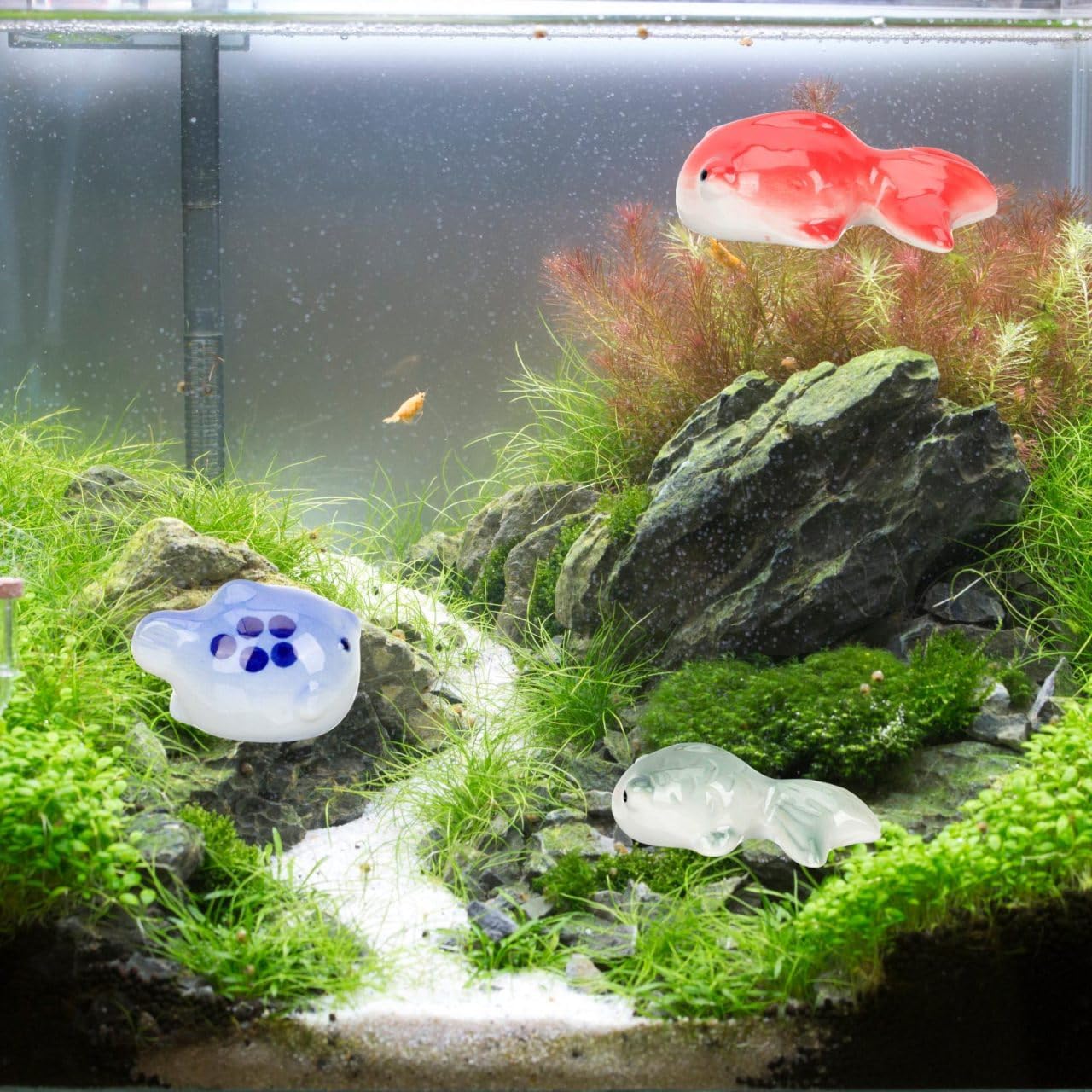 Stunning Ceramic Craftsmanship: Each piece in this 3-piece koi fish decor set is meticulously crafted from jingdezhen ceramic, fake fish for aquarium showcasing exceptional artistry and attention to detail that enhances any aquarium setting