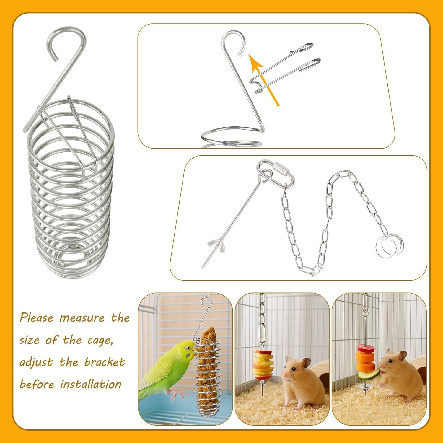 Adjustable Suspension Height: These rodent cage toys are equipped with hooks that can be easily hung anywhere in the cage, saving space and allowing for repositioning according to the pet’s growth stage (note: check if the pet can reach the top of the cage when hanging).
