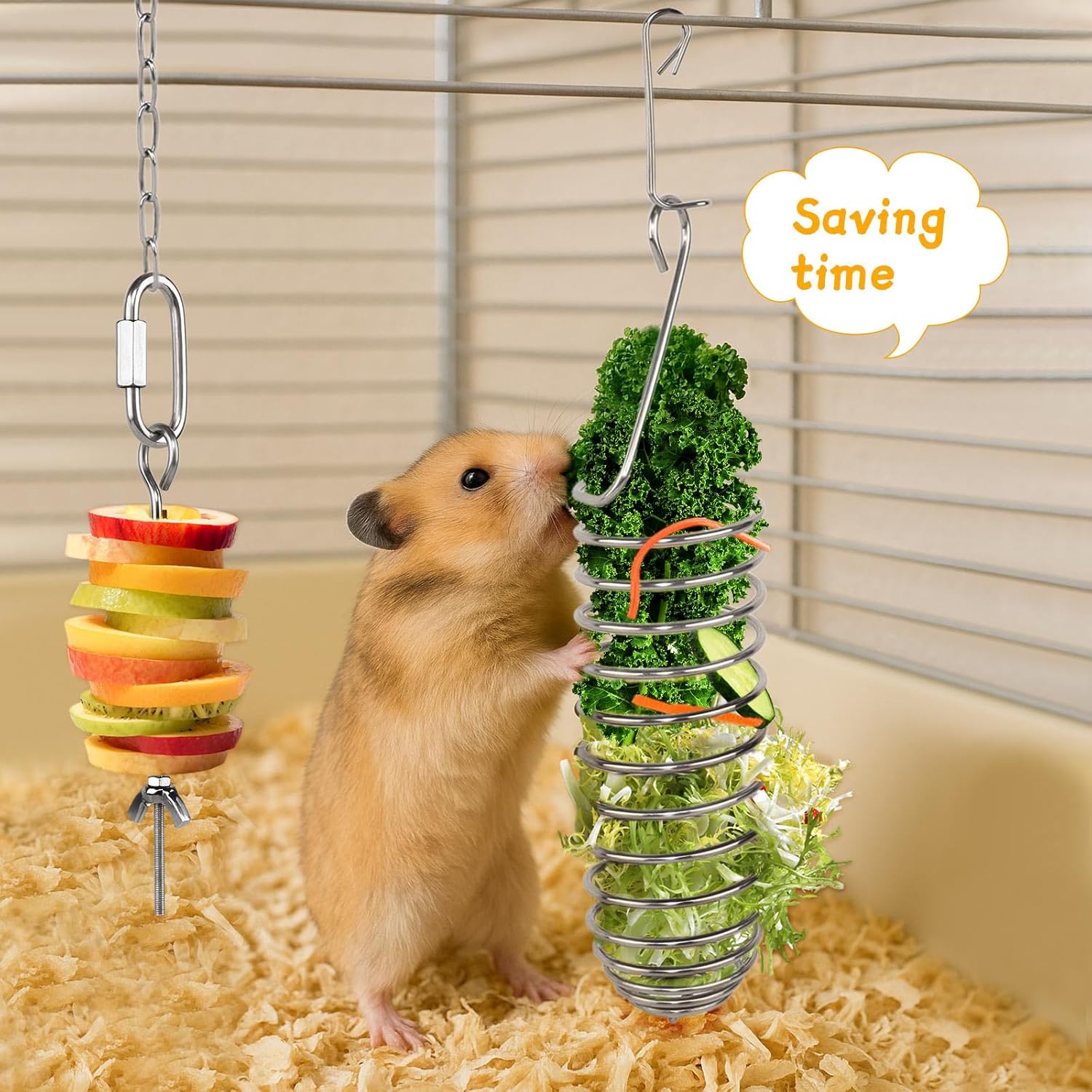 Save Time: Simply string fruits and vegetables together and put them in a cage. This not only eliminates food waste, but also keeps the mouse cage clean and tidy, so you don’t have to worry about cleaning up scattered food.