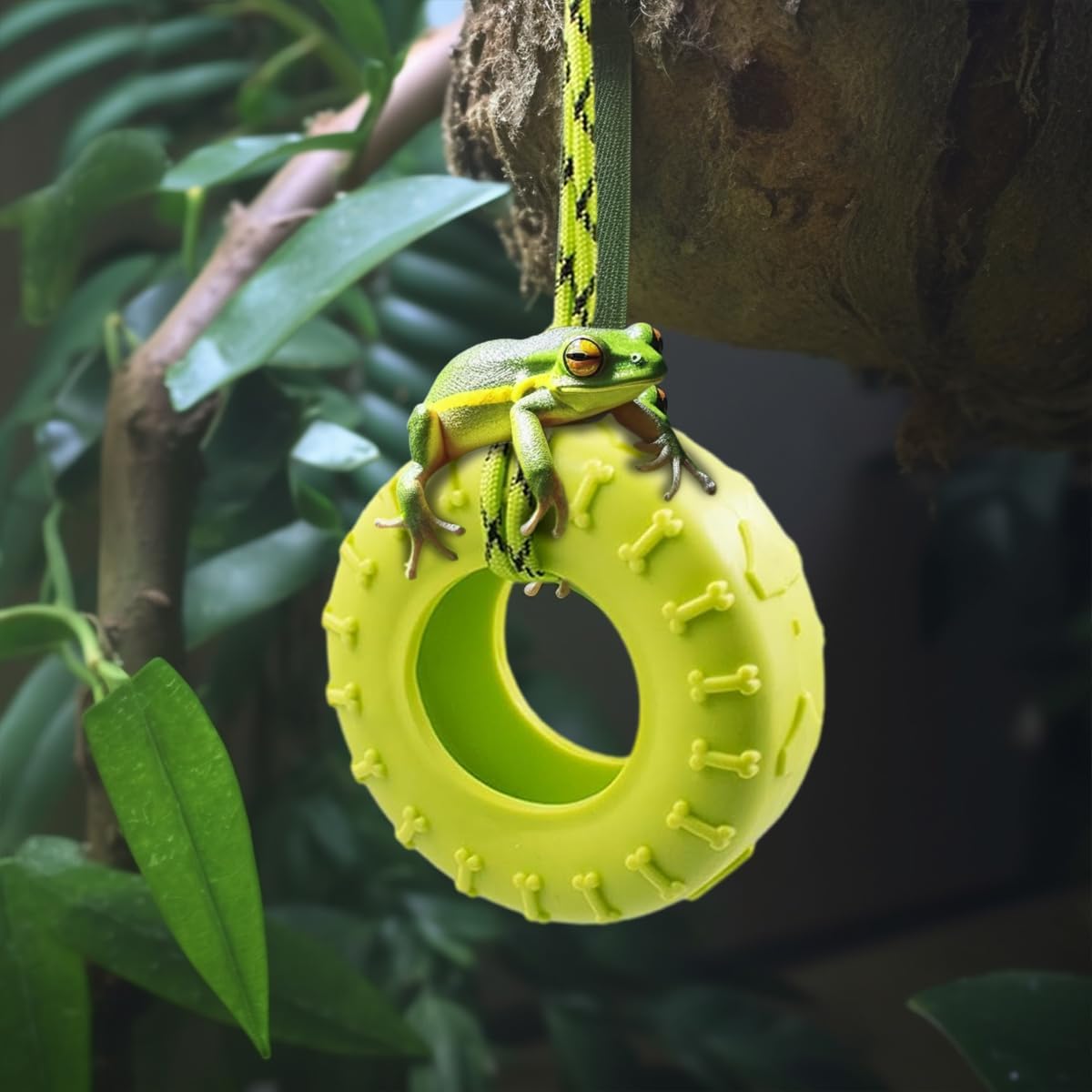 Wide Application: Suitable for various reptiles, amphibians, and crustaceans, this tire swing is not just limited to tree frogs. It can even be enjoyed by spiders or roaches, making it a perfect addition to any terrarium setup.