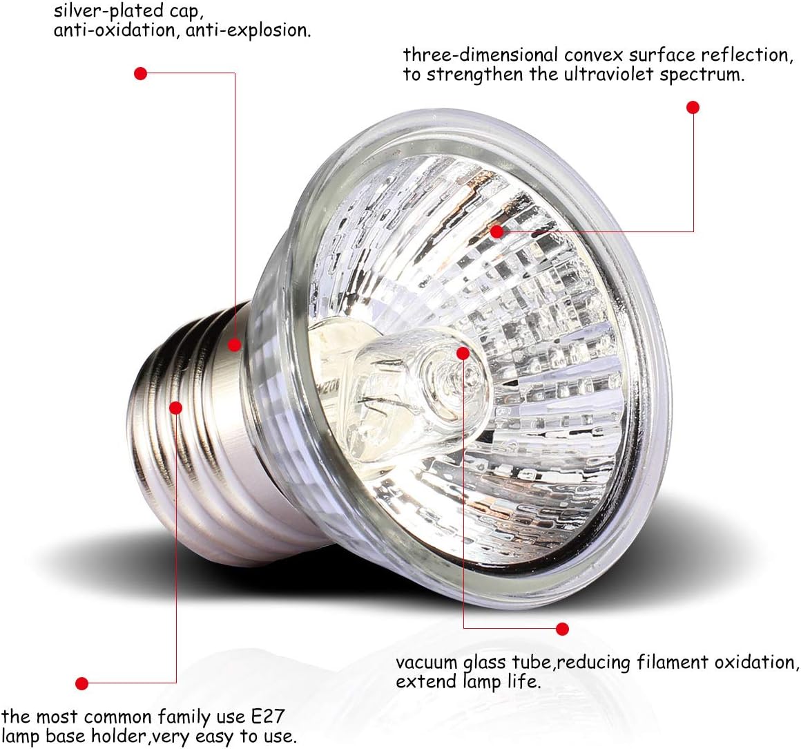 The bulb is with 97% UVA stimulate appetite and 3% UVB promote vitamin D3 synthesis, fully absorb calcium.