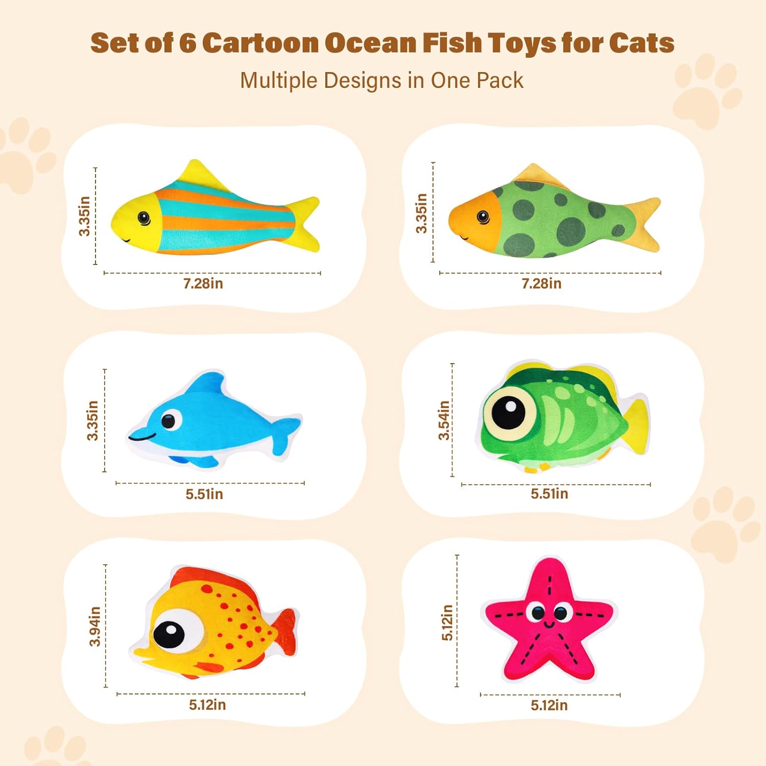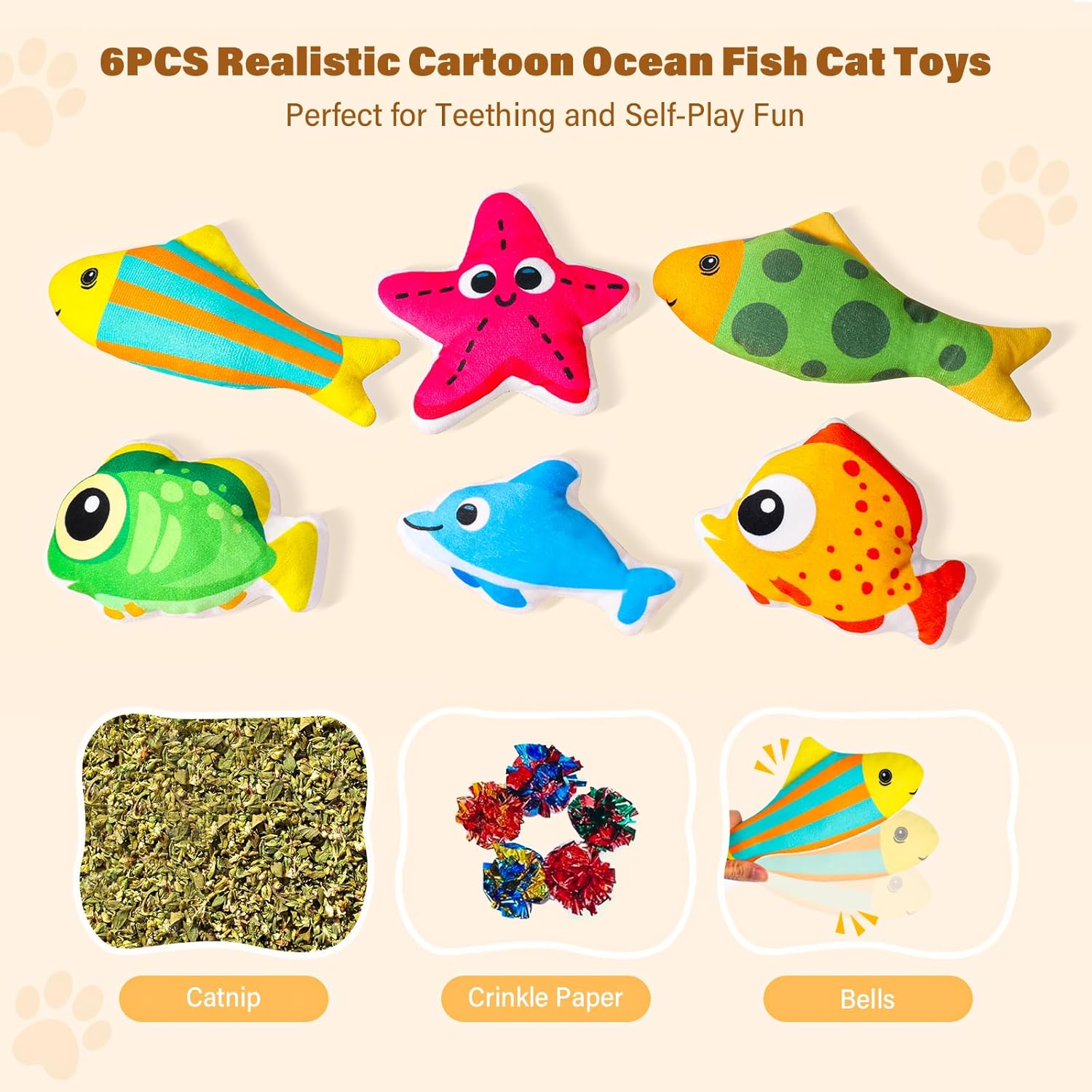 Multi‑Style Interactive Cat Toy – Includes six adorable ocean fish shapes and a starfish to engage your cat’s natural hunting instincts. Perfect as a cat toy fish and crinkle fish toy for endless indoor play.