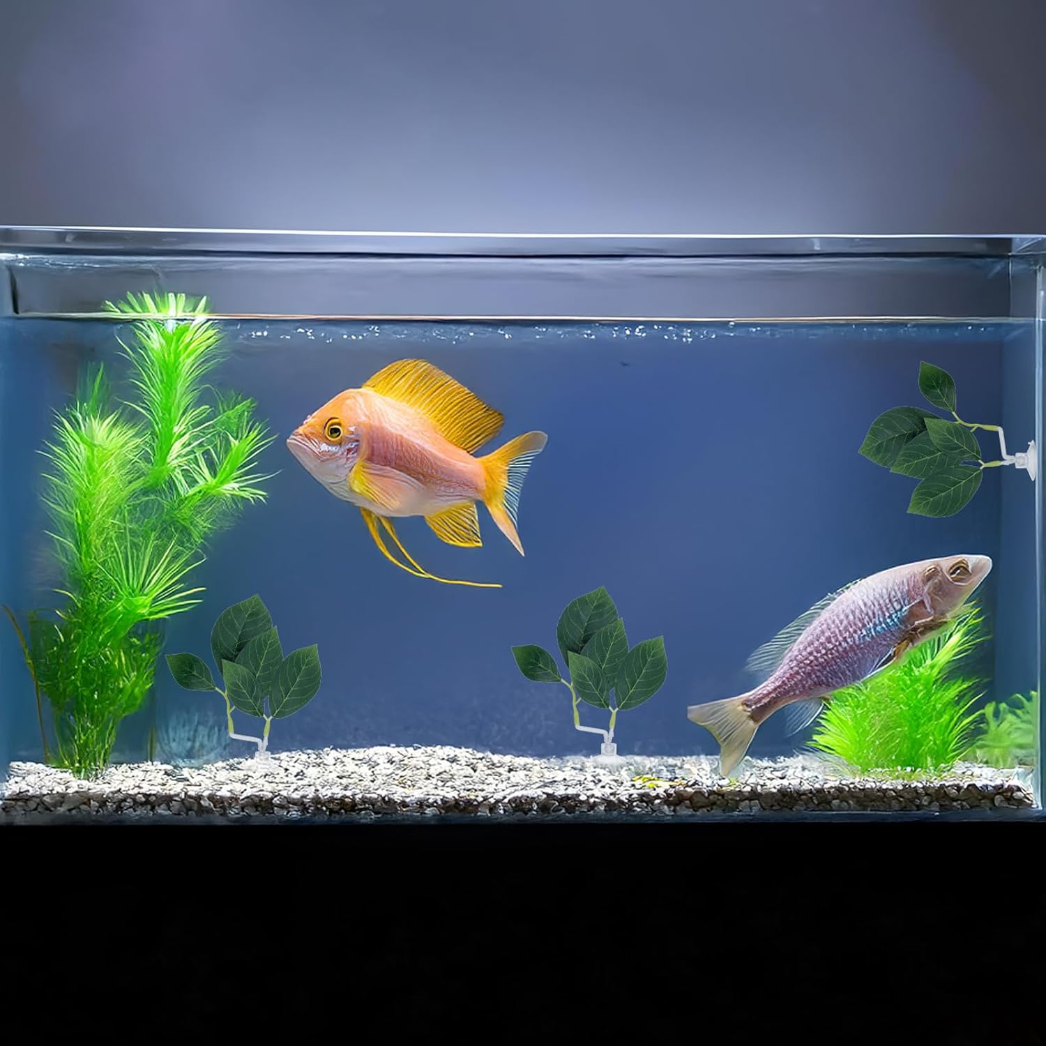6 fish tank plant decorations: You will receive 6 fish tank leaf decorations at one time, enough quantity for your use. The size of two leaves is 8.5×8.5cm/3.34×3.34inch, the size of three leaves is 12×11cm/4.72×4.33inch, and the size of the suction cup is 3×2.5cm/1.18×0.98in, which is suitable for fish tanks of various sizes, creating a simulated habitat for your fish and providing the most comfortable resting place