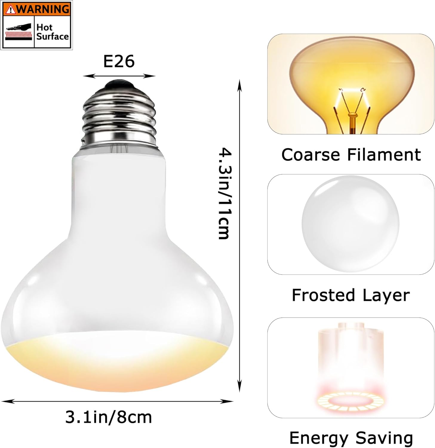 Efficient & Durable: Featuring a high-quality aluminum-coated bulb head and frosted glass cover, Which offers superior thermal efficiency and energy savings while ensuring gentle light that protects pets’ eyes from glare.