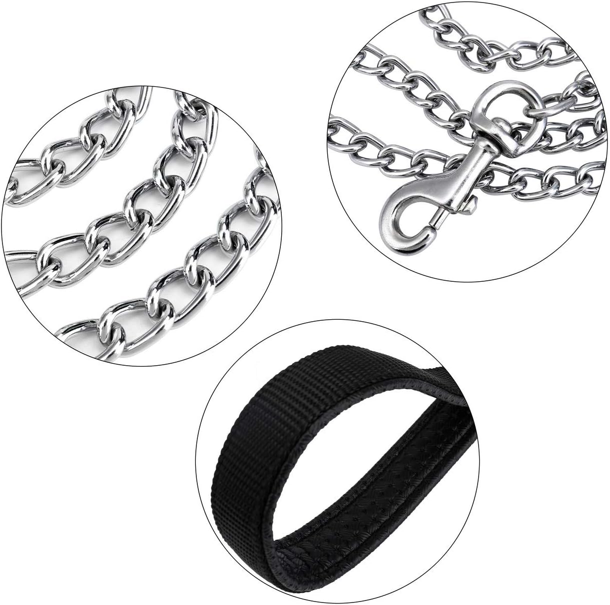 SIZE: Available in 2 sizes: 4.0 ft/47.0 inch; 6.0 ft/70.5 inch; 3.0mm Width. Chew proof chain leash, great idea to stop the dog from biting fabric leashes, suitable for dogs of any breed for daily walking.