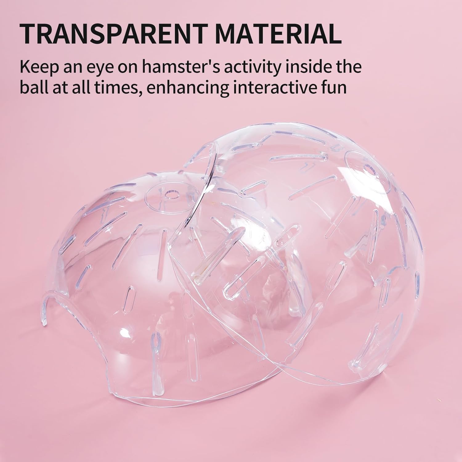 【Transparent Material】The main body of the ball is made of transparent plastic, allowing owners to observe their hamsters’ activities inside the ball at any time, enhancing interactive fun.