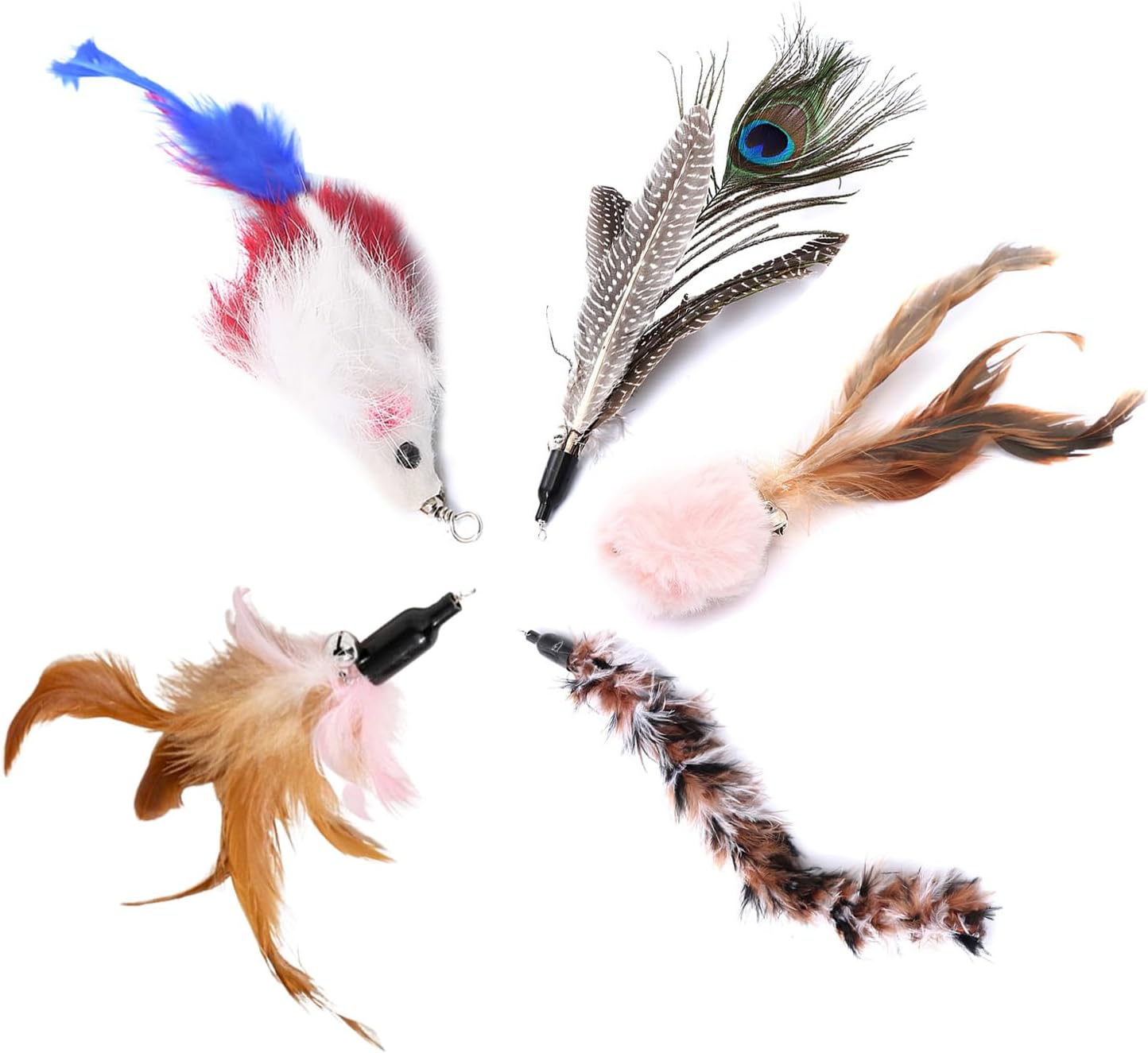 7 Pieces Cat Teasers Cat Feather Wand Cat Toy Interactive Toy Feather Wand with Bell 5X Natural Feather Refills