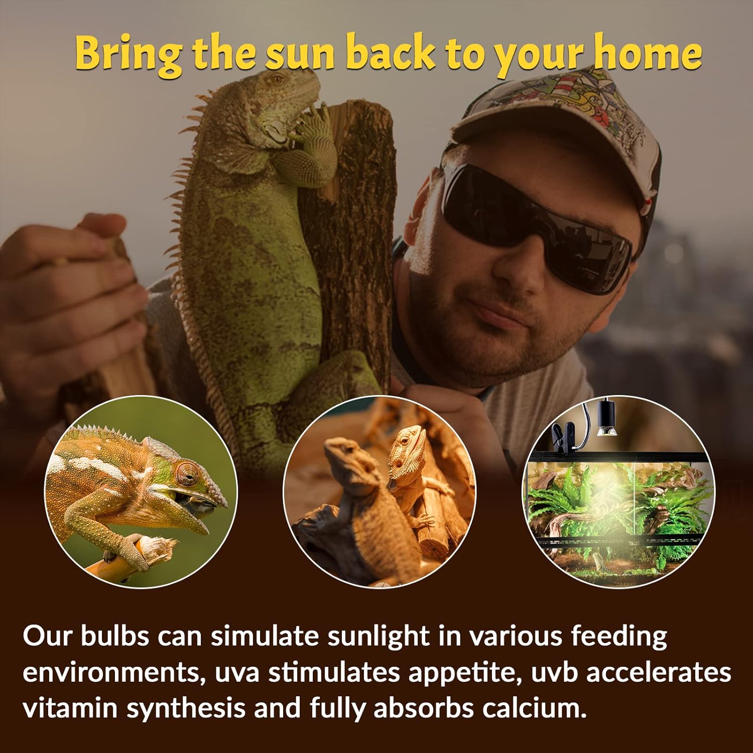 【Creates a Warm and Cozy environment for Reptiles】 Lustaled 50w UVA UVB reptile heat lamp bulbs allow you to create areas for heat accumulation, providing your pets with the ideal temperature range in their enclosure. By using Lustaled’s turtle heat lamp bulb, you can help your pets regulate their body temperature and support their bodily functions, showing them your care and love.