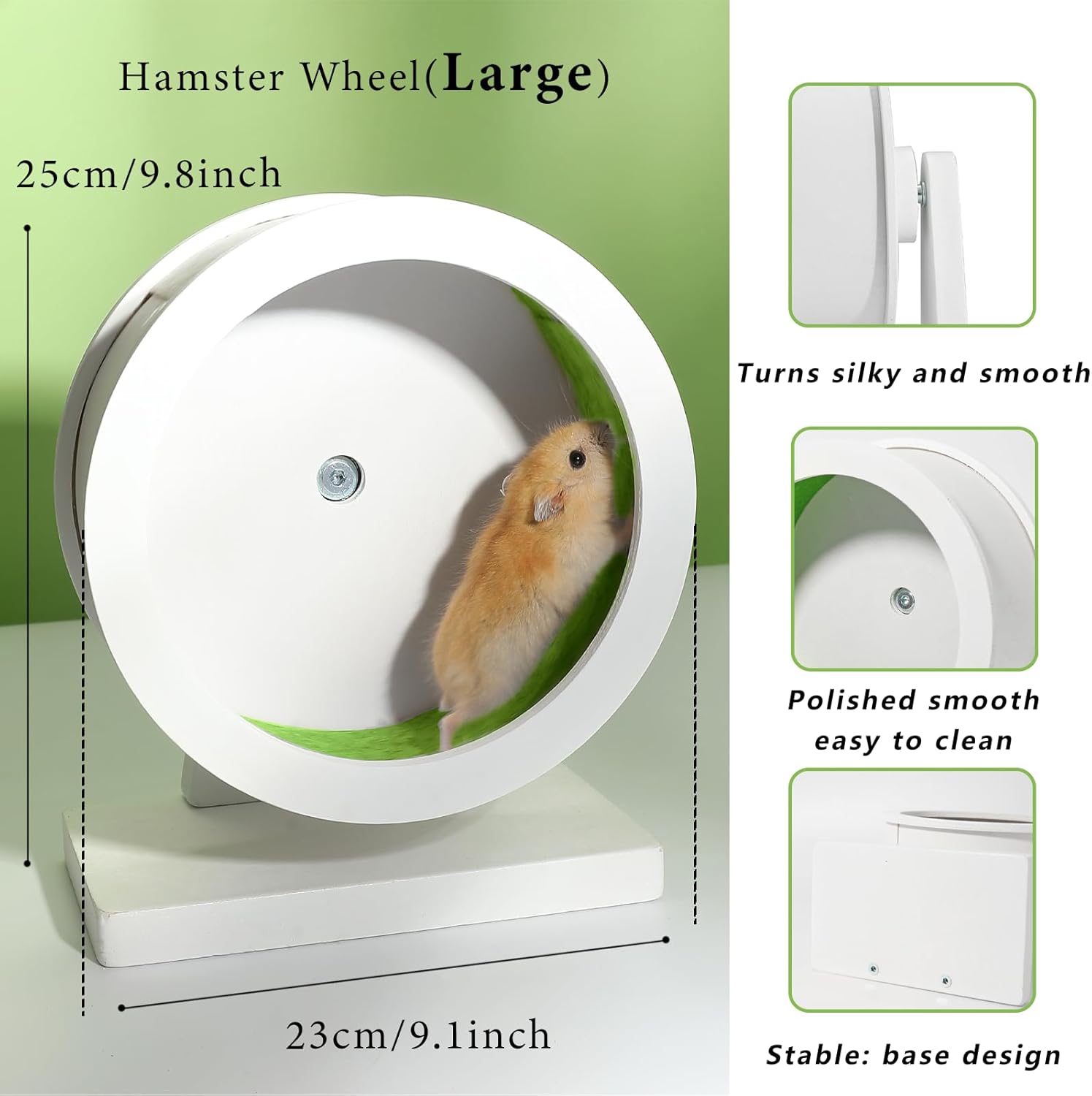 9.1 Inch Green Hamster Wheel Wooden Silent Training Exercise Wheel Quite Running Spinner Wheel for Dwarf, Gerbil, Guinea Pig, Hedgehog, Chinchilla (Green, Large)