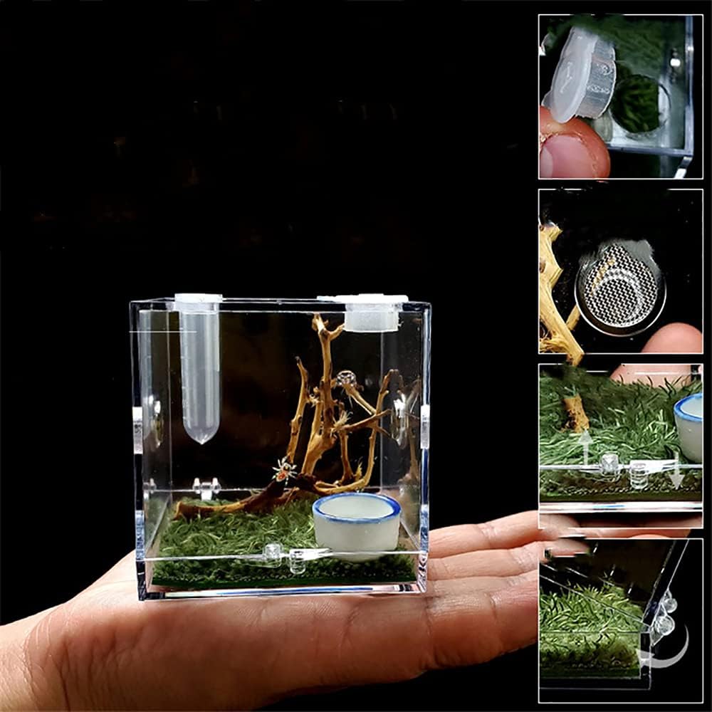 Acrylic Critter Keeper Jumping Spider Enclosure Snail Container House Accessories Reptile Terrarium Insect Enclosure Tank Snail Spider Habitat Cage Reptile Isopods Lizards Roach Feeding Box