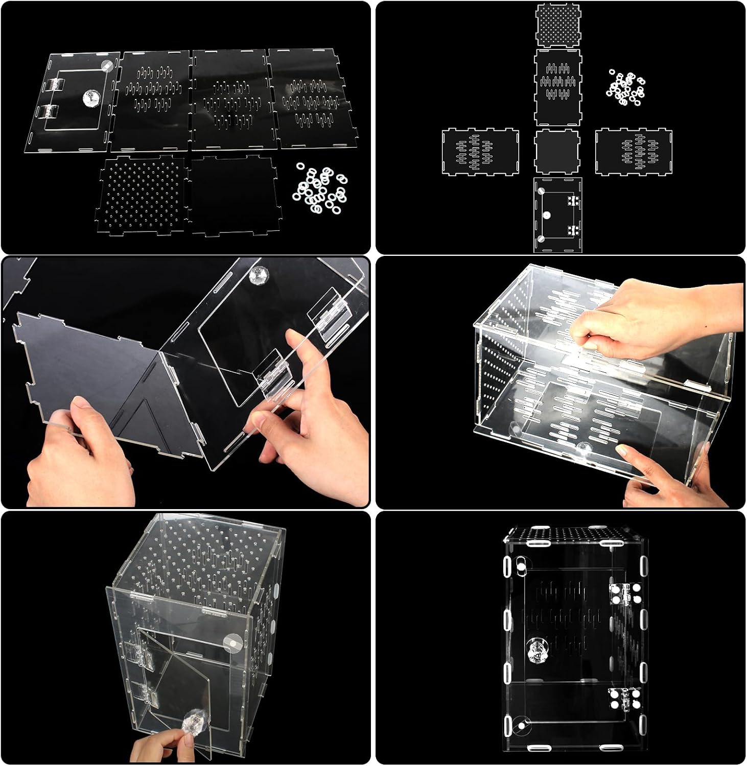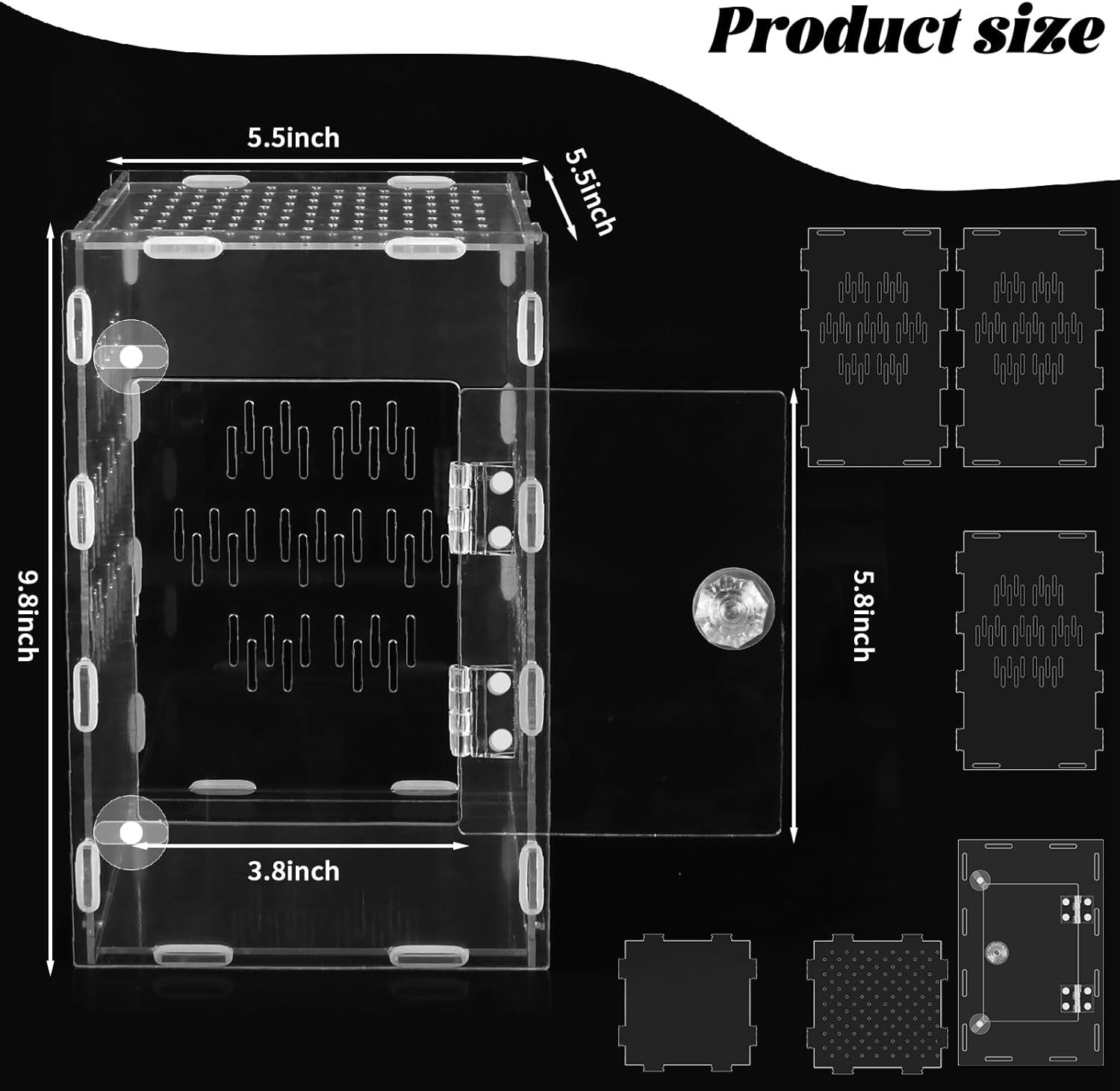 Acrylic Jumping Spider Enclosure, 6”x6”x9.8” Front Opening Door Insect Terrarium Perfect for Tarantula Reptile Enclosure Tank Praying Mantis Habitat
