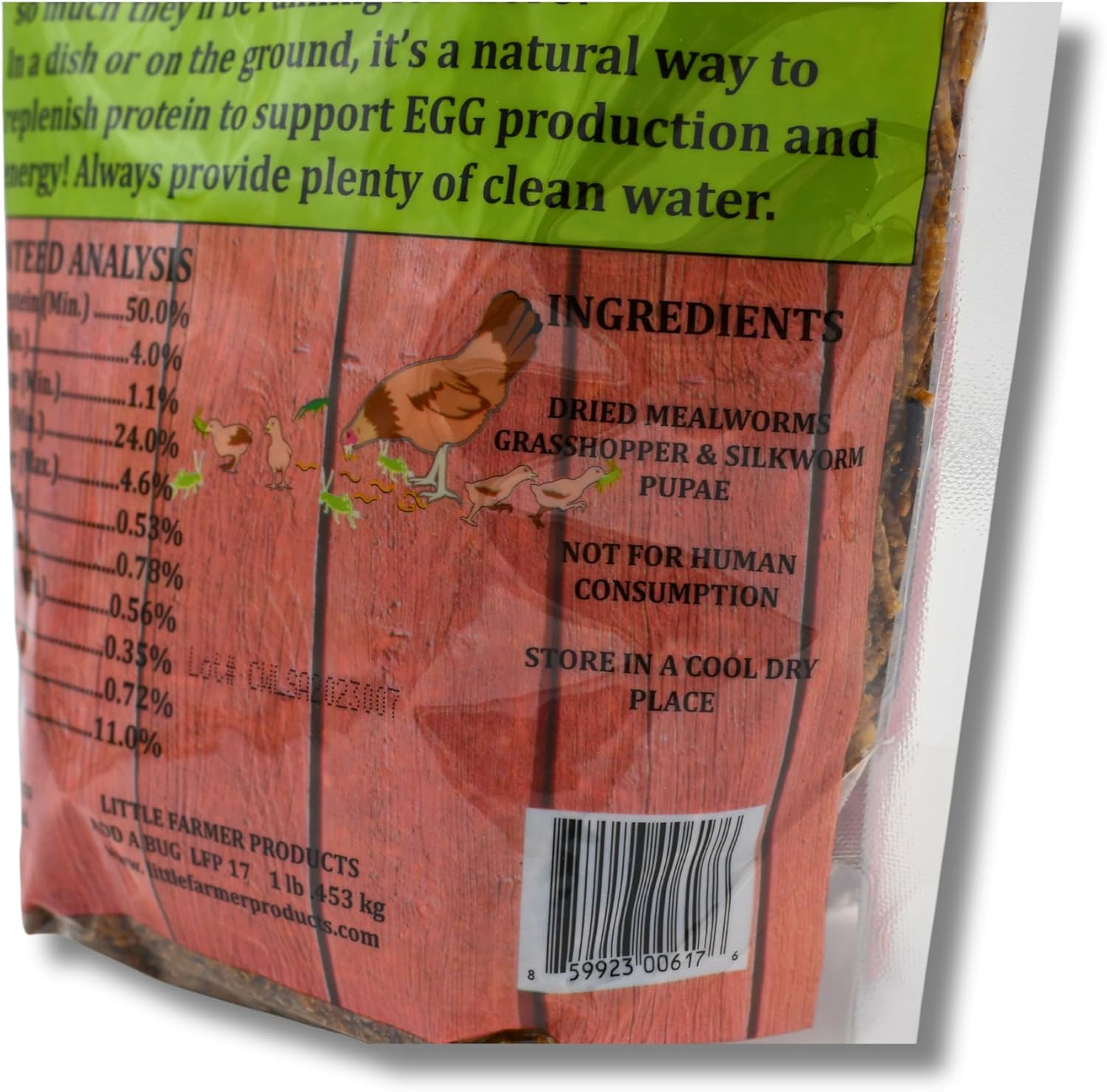 PROTEIN PACKED! Chickens LOVE bugs and benefit from the natural protein! Contains a trio of mealworms, grasshoppers, and silkworm pupae. 50.0% of crude protein for nutritious deep orange yolks!