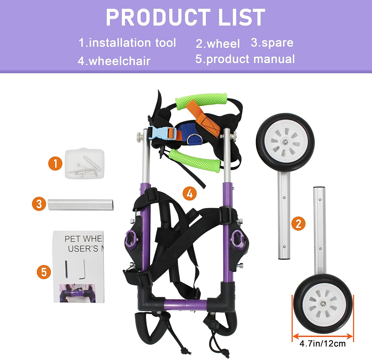 [Note]: Two-wheel ADJUSTABLE WHEELCHAIRS are only suitable for pets with disabled hind legs but normal front legs. If your dog is seriously injured, we recommend that you go to the veterinary hospital for help as soon as possible. I wish your pet a speedy recovery!