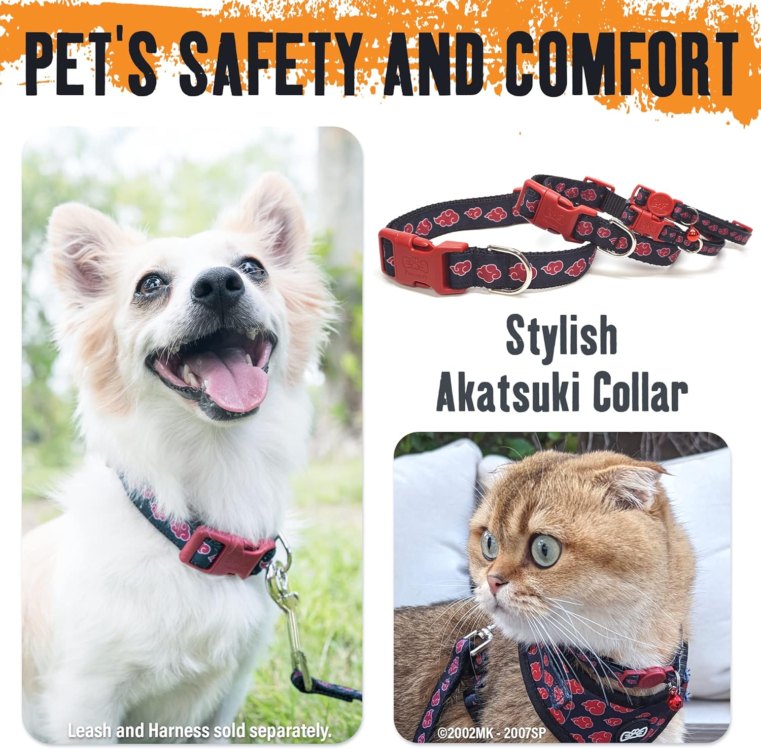 Akatsuki Anime Dog Collar for Large, Medium, Small Breeds, Puppy: Adjustable Naruto Dog Collar for Pets, Officially Licensed Naruto Akatsuki Cloak Inspired Pet Accessories & Gifts for Boy or Girl, MED