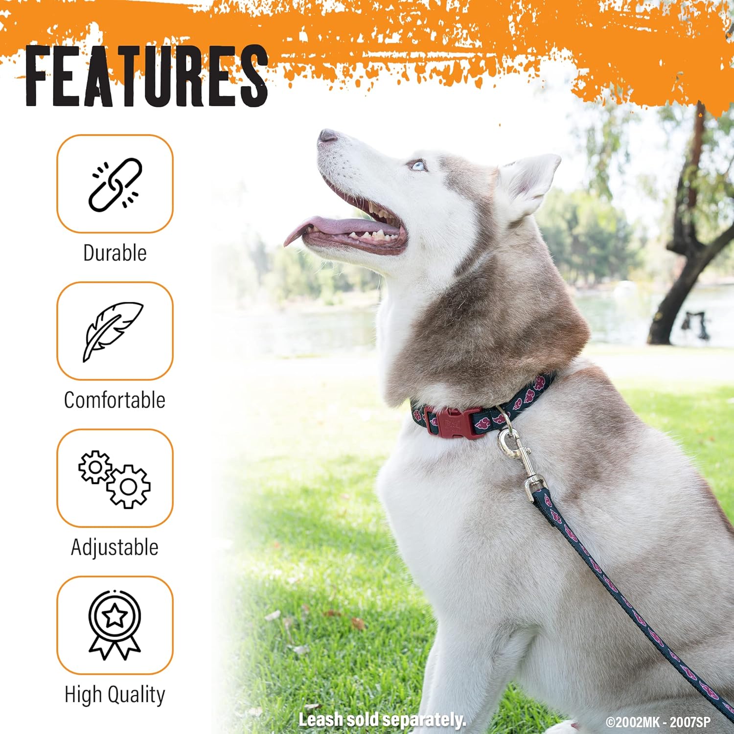 HEAVY DUTY DOG COLLARS: This strong & durable, thick dog collar is pet safe with a quick release dog collar buckle that won’t pop open, convenient d-ring for id tags or bells & can accommodate dogs of any size as an adjustable dog collar. The contrasting dog collar buckle & slider tops off the bold look of this stylish Akatsuki Dog Collar.