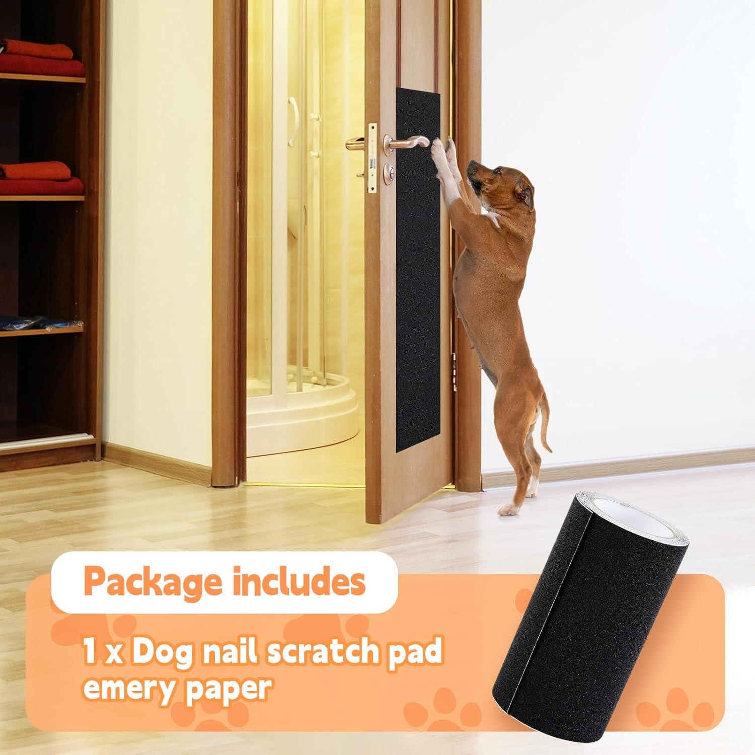 Self Adhesive Sandpaper: designed for areas’ dogs frequently scratch; Adheres to smooth, flat, clean surfaces like doors, corners, doors, corners, grab posts, corrugated cardboard; Not recommended for surfaces with peeling paint; Durable and tear resistant for long lasting use