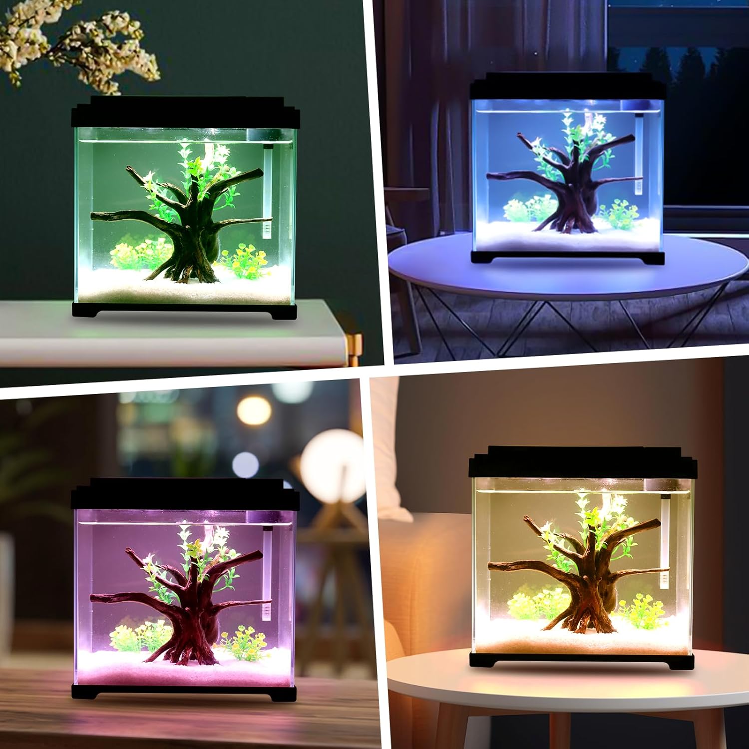 4 Dynamic LED Modes for Every Mood & Ecosystem: Switch between vibrant full-spectrum white (plant growth), calming blue (night ambiance), energetic red (color pop), or warm yellow (cozy glow) with the touch of a button. The slim LED bar is seamlessly integrated into the cover, providing even illumination without harsh glare.