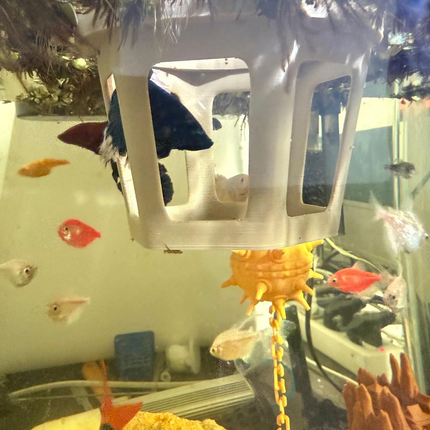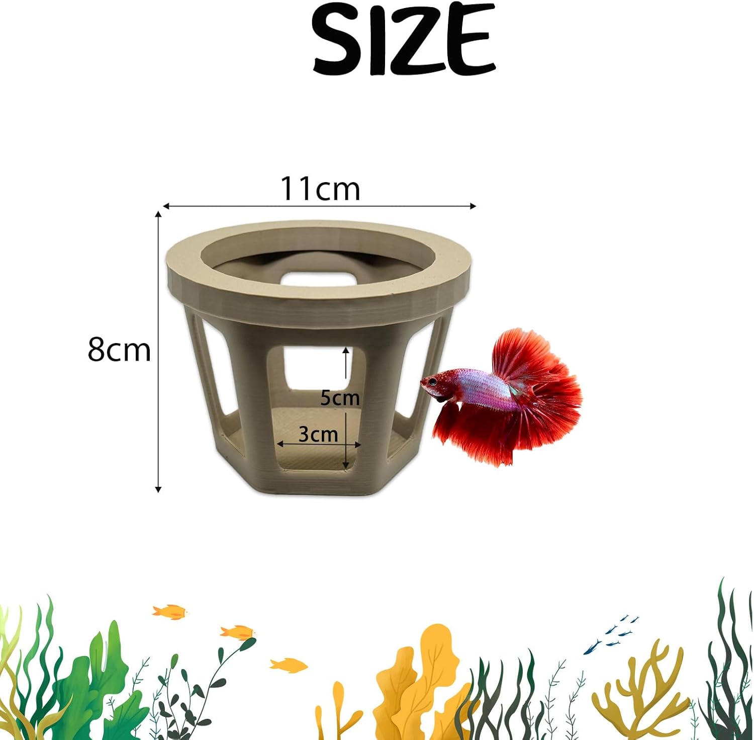 Provide a Hiding Spot Give your Betta fish, small fish, and shrimp a hidden place to entertain, breed, or hide in the aquarium. Ample Openings for Easy Movement The design features multiple openings, allowing your Betta fish to swim freely while also enabling easy observation. Rest, Play, and Feed This accessory serves as a resting and play area for your Betta, while also helping to gather floating fish food, preventing it from scattering throughout the tank. Safe Material Made of PLA material through 3D printing, it is suitable for Betta tanks and shrimp without affecting water quality. It fits most aquariums. Size Reference Please refer to our product dimensions before purchasing and consider the size of your aquarium.