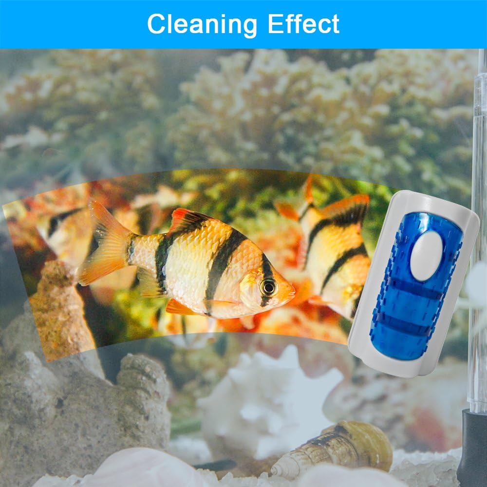 Aquarium Cleaner Fish Tank Glass Cleaner Algae Scraper Magnetic Scrubber Algae Clean Brush, 2 Pcs, 1 Yr Warranty