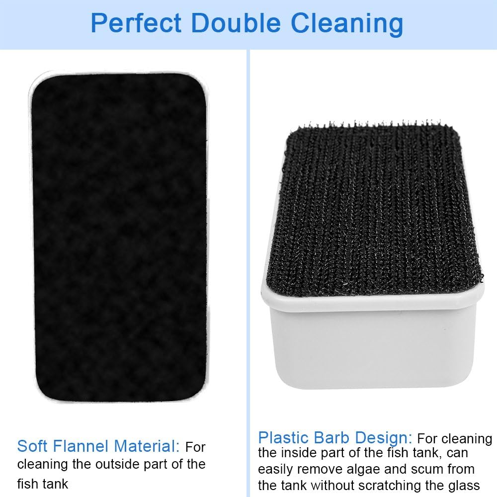 PERFECT DOUBLE CLEANING: In life, humans need a clean and tidy home, and so are fish. DaToo offers you the perfect cleaning solution.The cleaning pad of DaToo used for the fish tank interior is plastic barbed, these barbs can easily clean your aquarium without scratching the glass. The cleaning pad for the exterior is made of soft flannel, it can help you clean the outside of the tank at the same time and save your time. Just clean it up once and your fish will get a clean home.