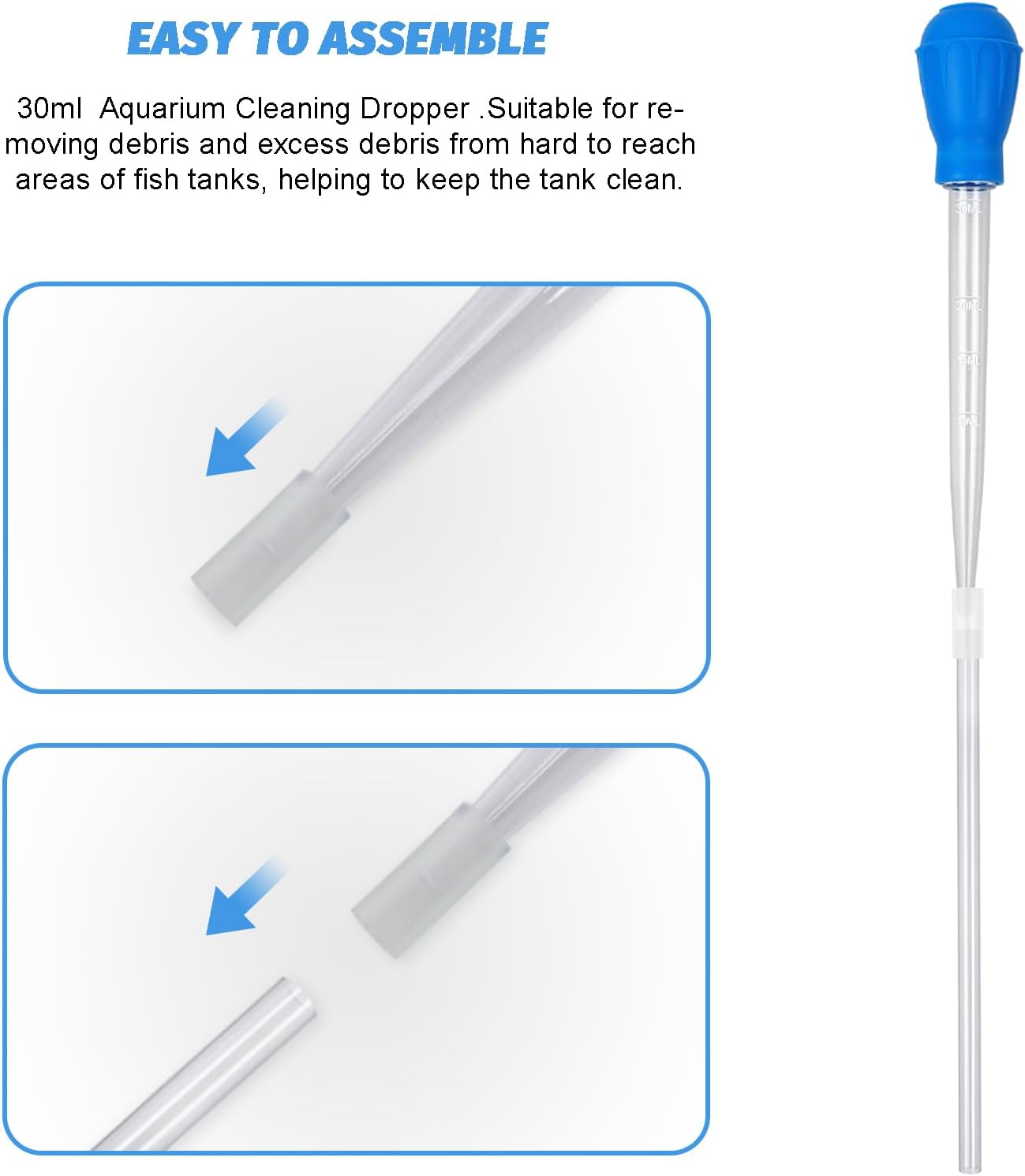 Aquarium Cleaning Dropper, 30ml Aquarium Cleaning Waste Remover, Aquarium Gravel Cleaning Straw, Blue