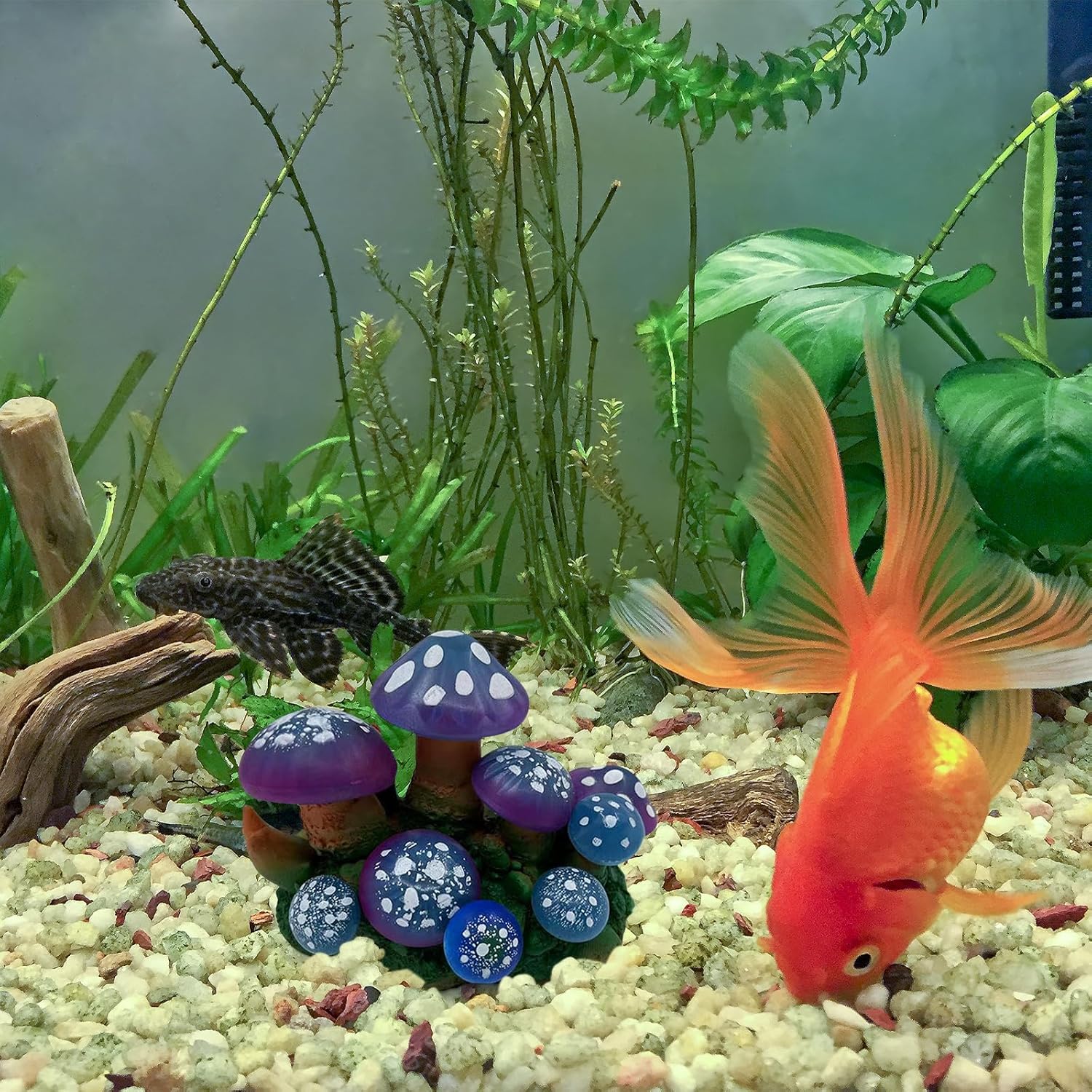 Perfect Complement for Greenery: Our red artificial mushroom is the perfect accent piece for the green plants in your aquarium, making for a vibrant and delightful underwater landscape.