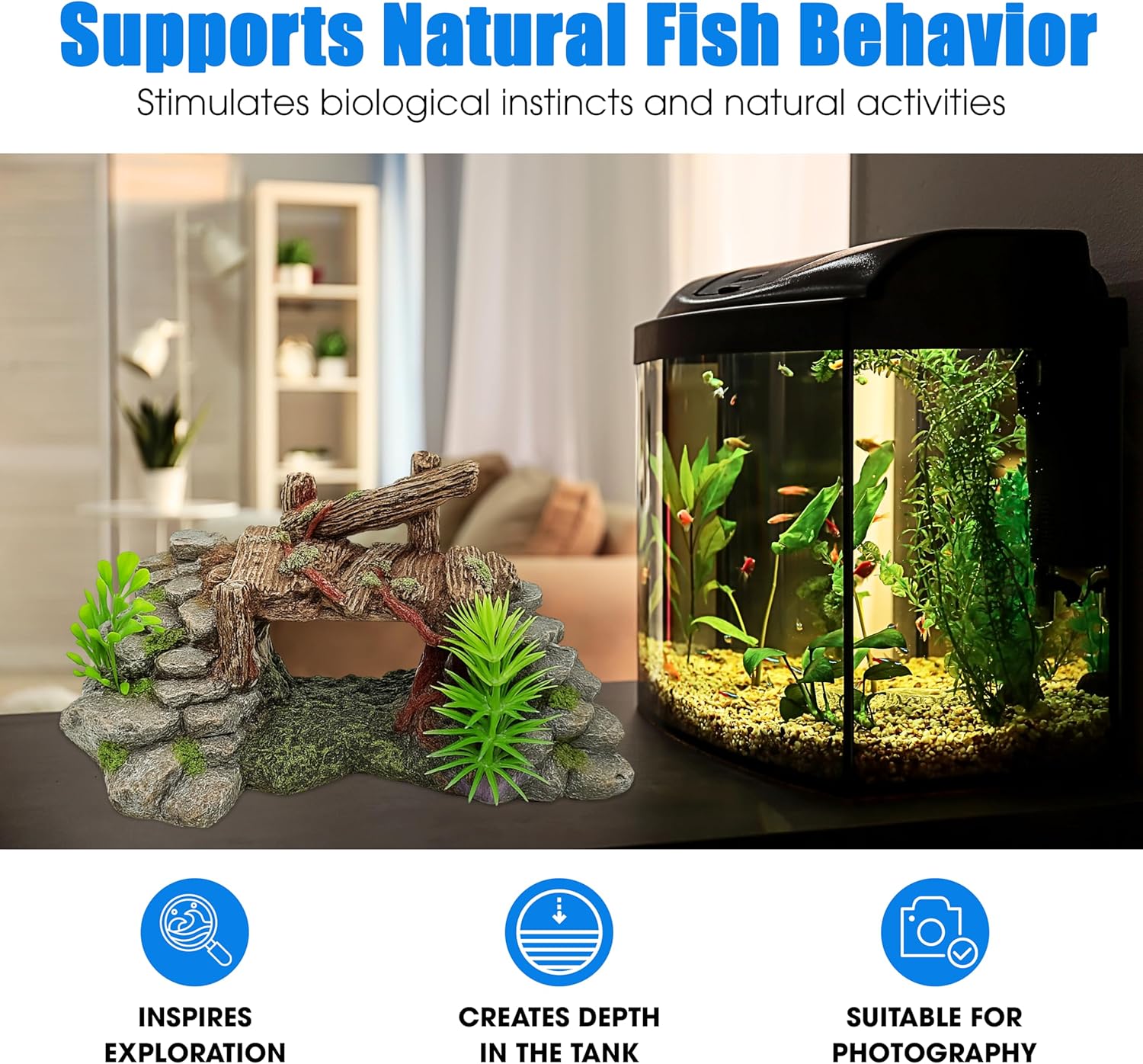 Aquarium Decor, Betta Fish Tank Accessories with Plants, Turtle Tank Decorations, Large Aquarium Ornaments, Fish Hideout, Decorative Accessories for Freshwater & Saltwater Tanks (Grass Bridge)