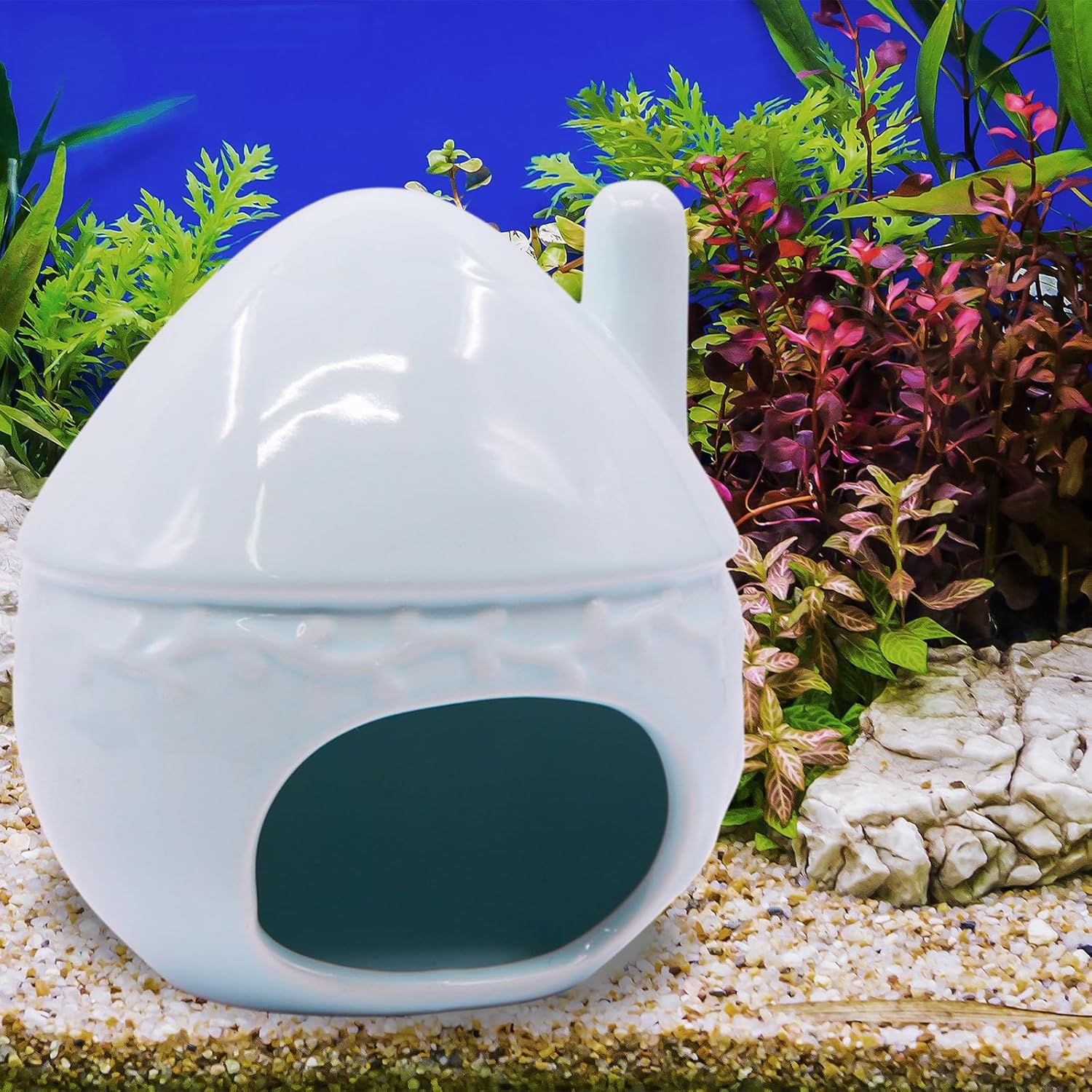 Lovely ceramic caves fish tank decoration has large enough holes and room for fish, shrimp to comfortably hang out, play and rest. Keeping this cave in their tank will give them their personal space and peace of mind